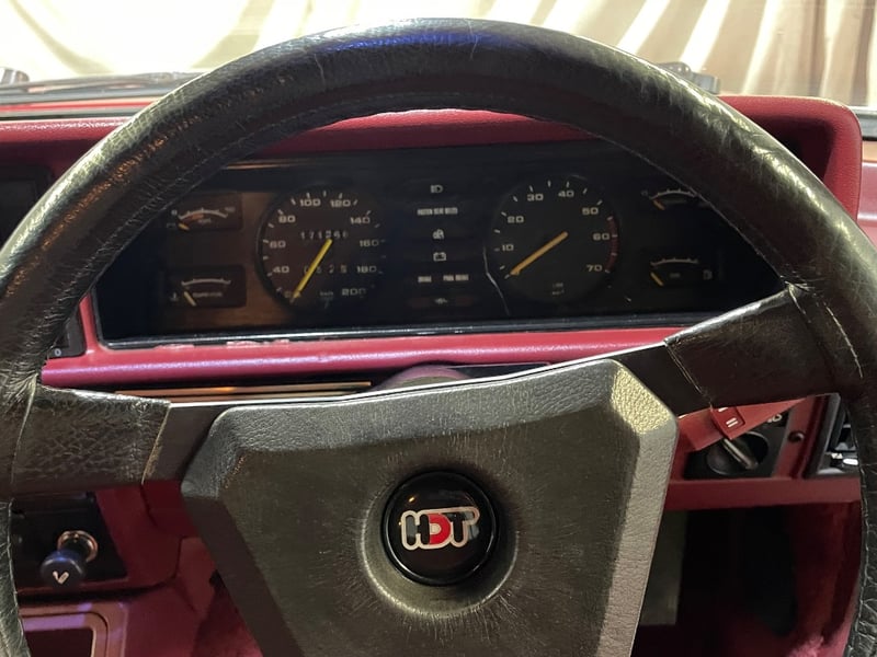 This is where the legend started. Before the VH 05 series, before the Energy Polarizer controversy, before Peter Brock became a household name outside motorsport, there was the VC Brock. In 1980, Peter Brock and HDT Special Vehicles took the new VC Commodore SL/E, applied their performance and appearance package, and produced 500 cars that changed Australian motoring forever. This is one of them. Build #125, making it an early production example from within the first quarter of the run. Maroon over a correct period interior, the desirable 5.0L V8 matched to a 4-speed manual, and privately owned for the last decade. The seller describes it as factory standard, and the photos back that up. The HDT side stripe package is present and well-adhered, the Peter Brock badging sits correctly on the lower rear quarter, the boot lip spoiler is intact, and the HDT wheels with their distinctive Racing centre caps are all there.