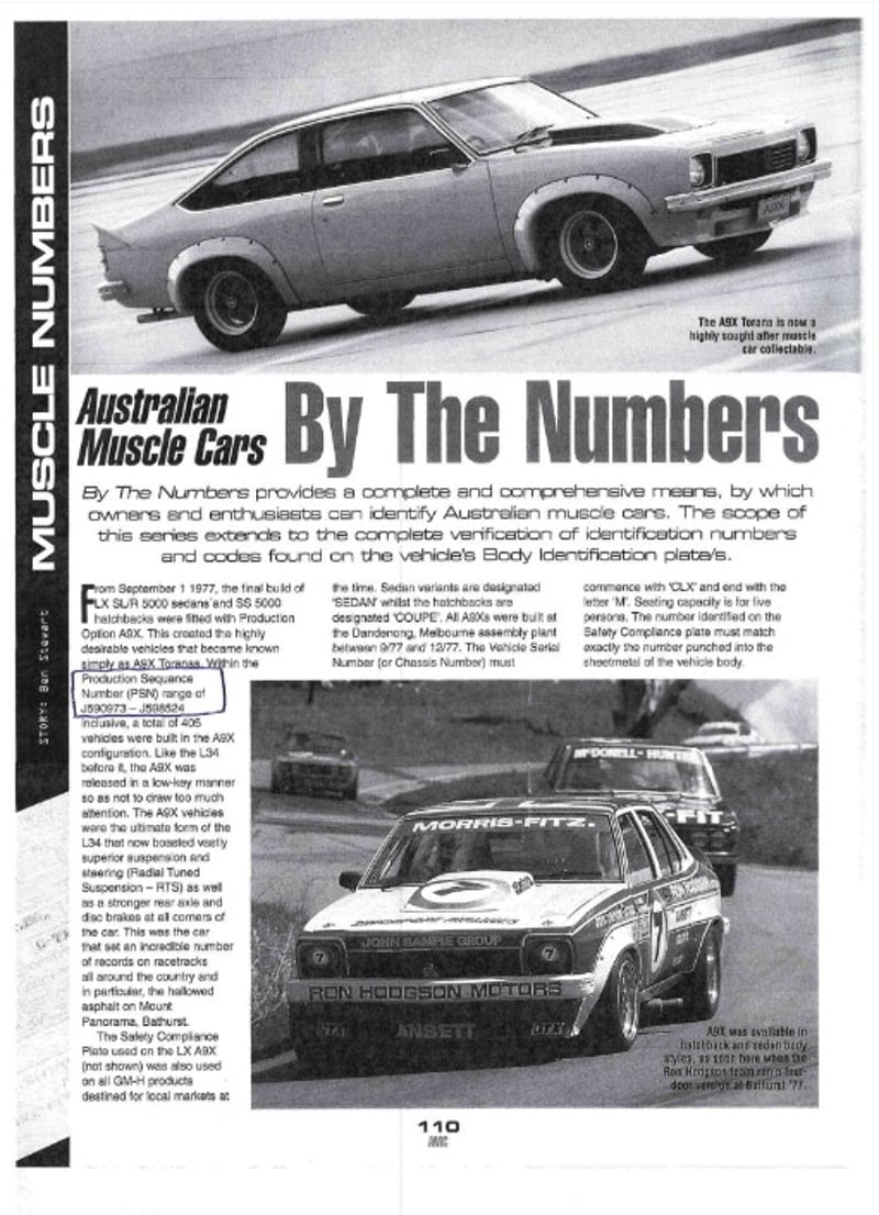 THE VERY FIRST A9X TORANA EVER BUILT - 1977 LX SLR5000 A9X - PSN #1 OF 500 - WHITE/BLACK - 58,901 KM - PRESS CAR PROVENANCE - FULL OWNERSHIP HISTORY - PLATE IYL 155