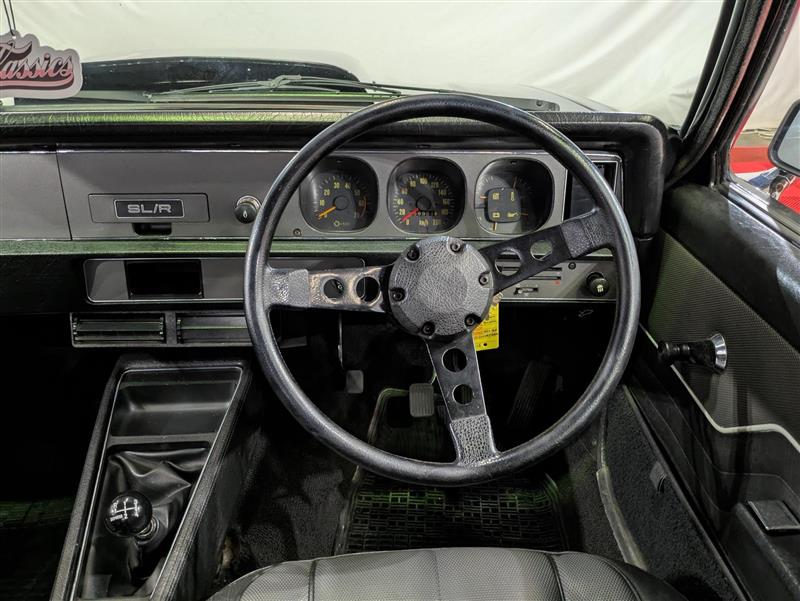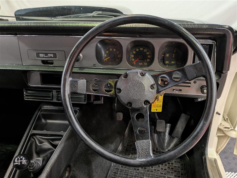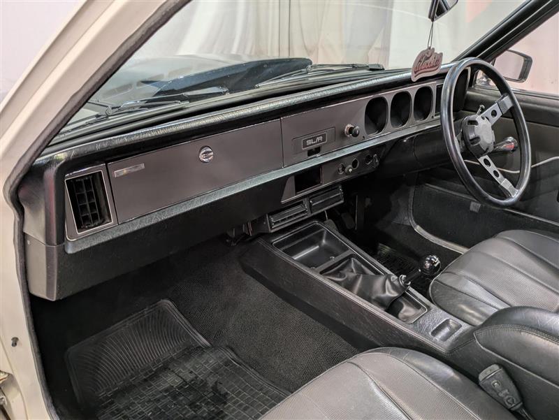 The car presents in exceptional condition. Exterior specification is complete and correct. The full black bonnet treatment, white body, four-corner bolt-on flared guards, front chin spoiler, rear ducktail spoiler, A9X bonnet bulge, and SLR5000 badging on the guards are all present and correct. At 58,901 km, the odometer tells a story of careful custodianship across 48 years of Australian summer. The paint quality is beyond what original 1977 lacquer would present, and any buyer should verify the respray history with a paint depth gauge. A high-quality correct respray does not diminish value on a car of this provenance, but it needs to be confirmed. The wheels currently fitted are mesh style rather than the factory A9X slot mags. Buyers should establish whether the original wheels are retained and whether they are included in the sale. On a car at this level, matching original items matter.