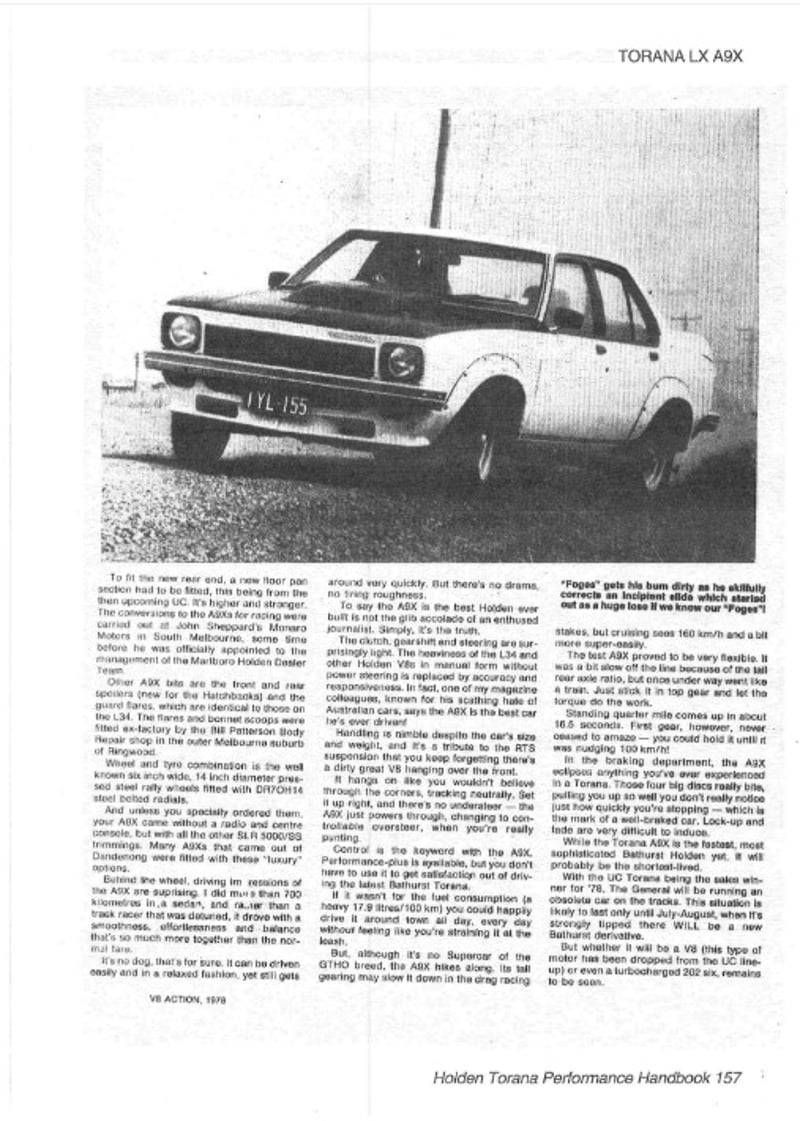 * Original Holden press vehicle, featured in 1978 magazine road tests