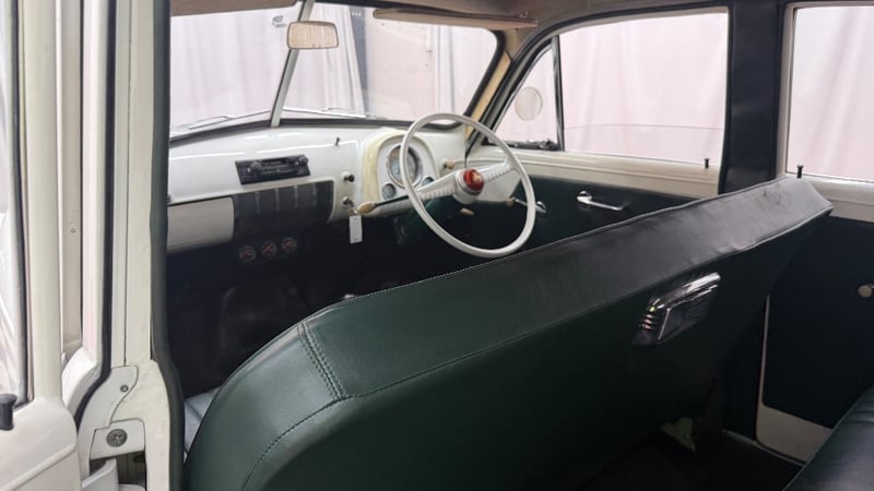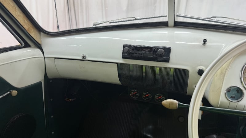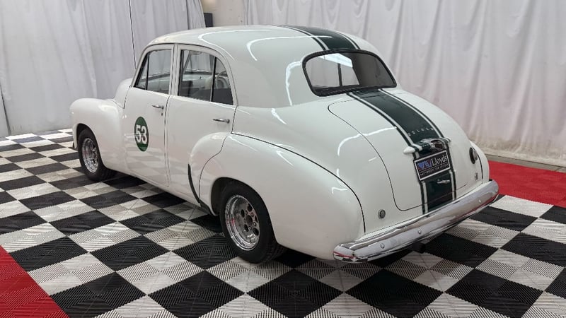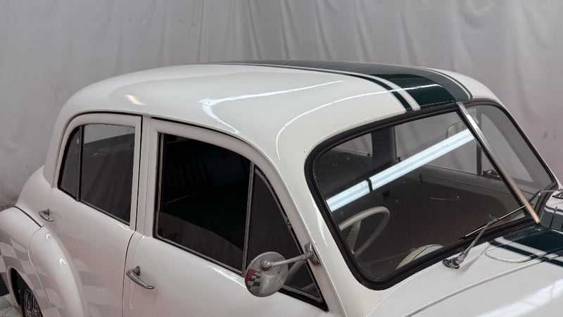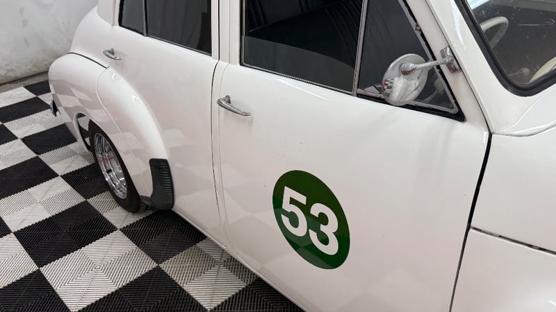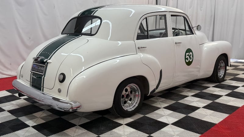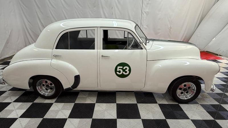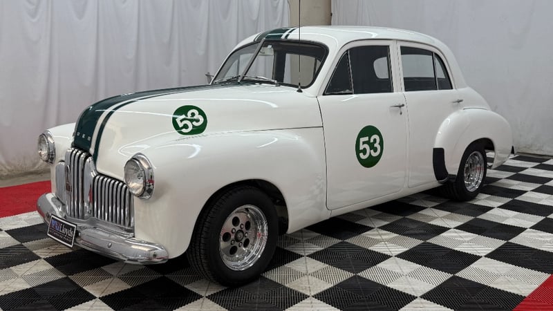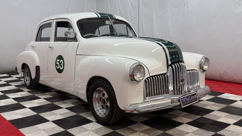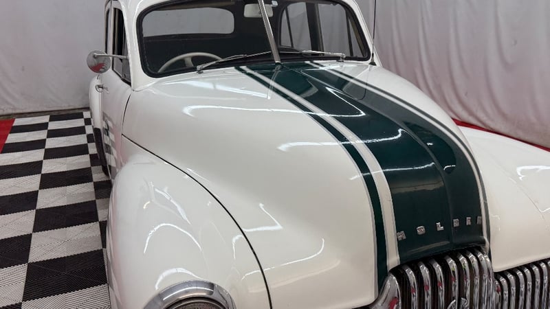 They don't come much more significant than this. The Holden FX was Australia's first locally manufactured car, and the 215 Sedan is the core of that story. This 1953 example is one of the earliest Holdens, and it presents in a striking custom racing livery that turns heads while still being distinctly, proudly Australian. The white body wears dark green centre stripes running the full length of the bonnet and roof, complemented by a green #53 roundel on the front guard, a tidy nod to the car's birth year. The paintwork is high-gloss and looks very good, with no visible rust or significant bodywork issues evident from the photos.