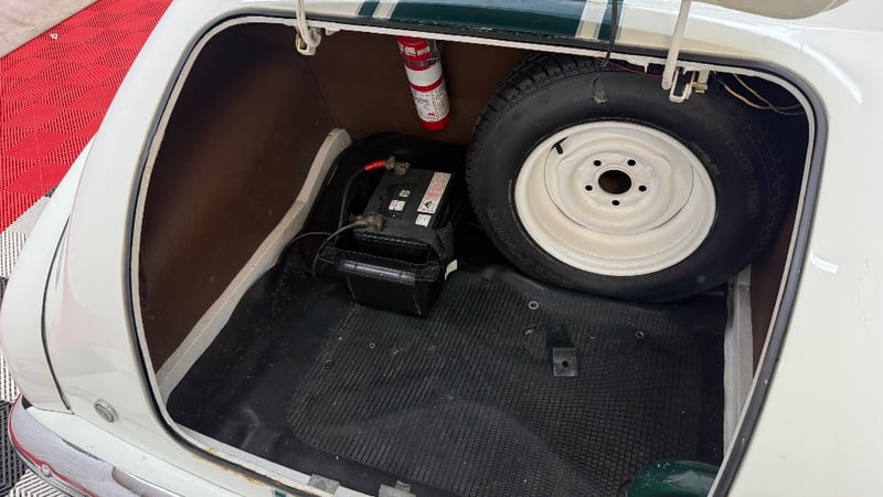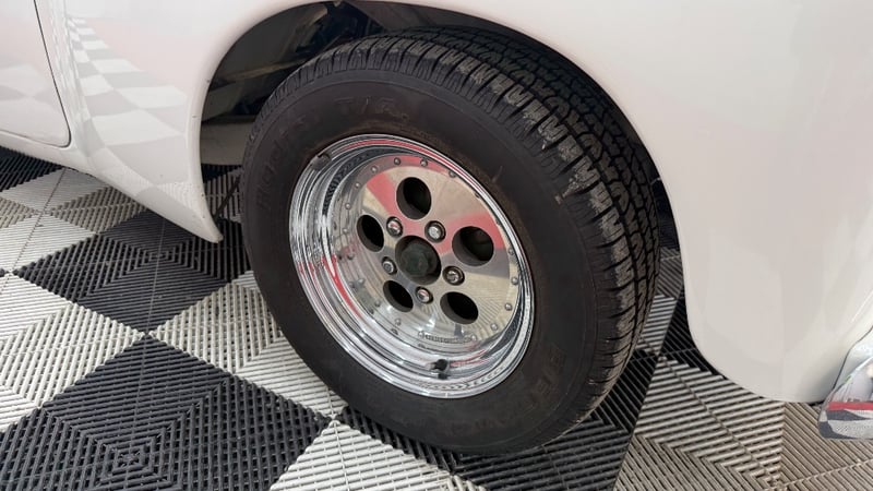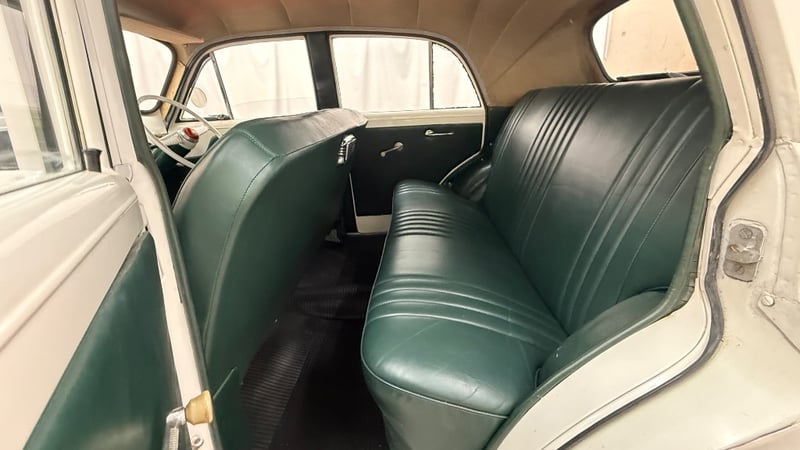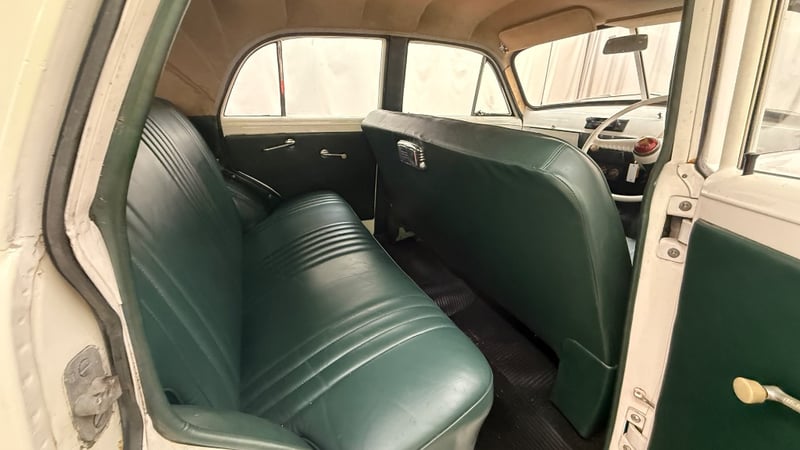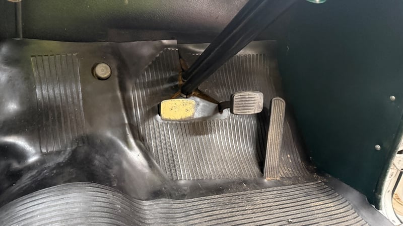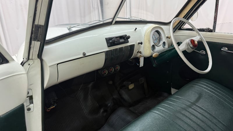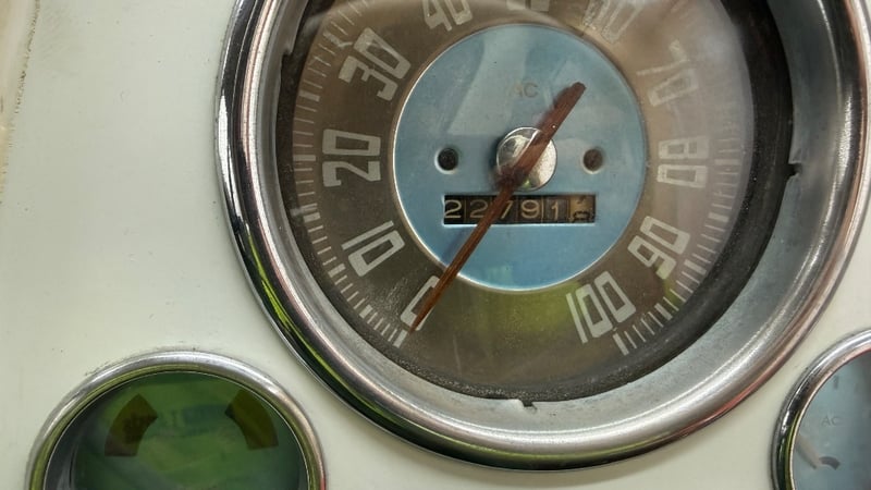 The vendor has had twin SU carburettors and extractors fitted to the 215 six, giving this old girl a bit more to play with than she left the factory with. Aftermarket slot-style alloy mags replace the original steelies, and period mud flaps add a nice detail touch. The triple aftermarket gauge pod under the dash keeps an eye on oil pressure and temps, which is smart on a modified engine. The odometer reads an indicating 22,791 km, and while that number is not independently verified, combined with the overall presentation it suggests this car has been well looked after.