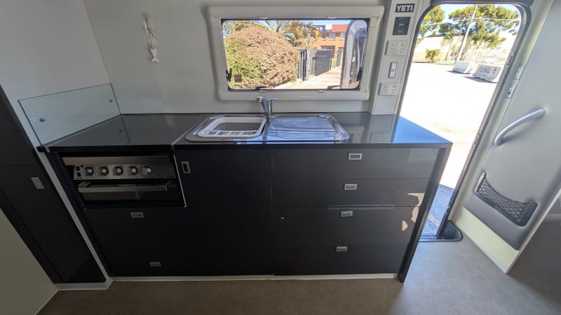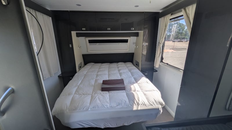 A standout feature of this caravan is its strong off-grid setup, including three 120Ah lithium batteries, a 3000-watt inverter and 600 watts of solar, providing the ability to travel and camp independently of powered sites. Comfort is further supported by the installation of a new FreshJet 7 air conditioning unit, still under warranty, ensuring reliable climate control in a wide range of conditions.