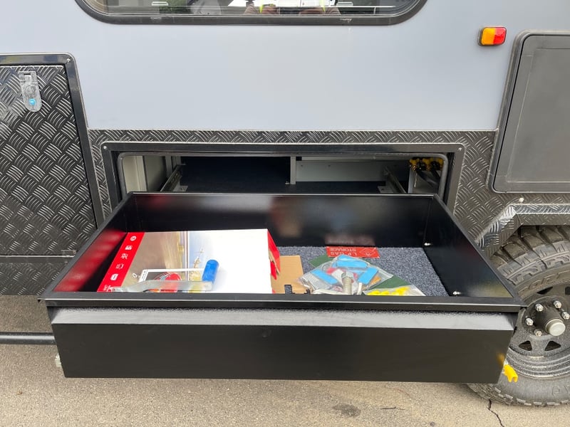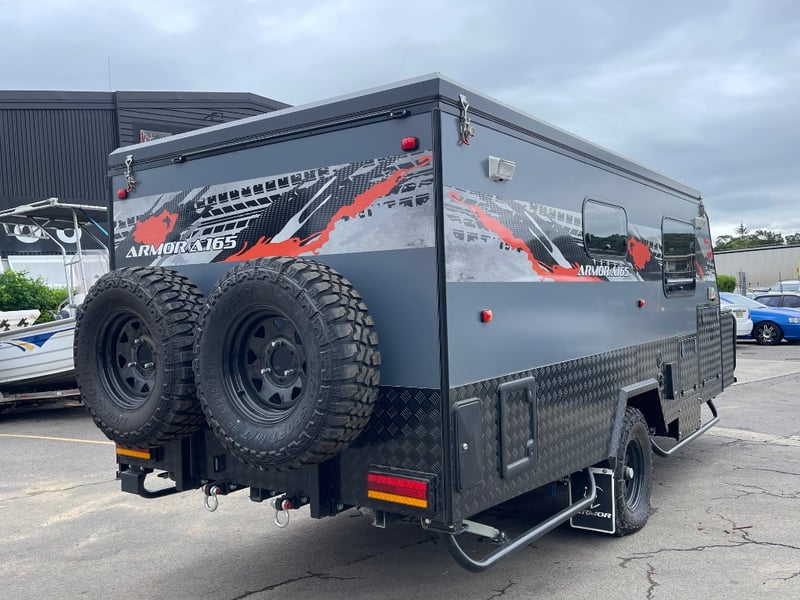Built on an extra heavy-duty off-road chassis with independent trailing arm suspension, coil springs and twin shock absorbers, the A165 is engineered to handle challenging terrain while maintaining stable towing performance. The hot-dip galvanised steel frame and heavy-duty off-road coupling further enhance durability, making this caravan a capable option for buyers looking to explore beyond sealed roads.