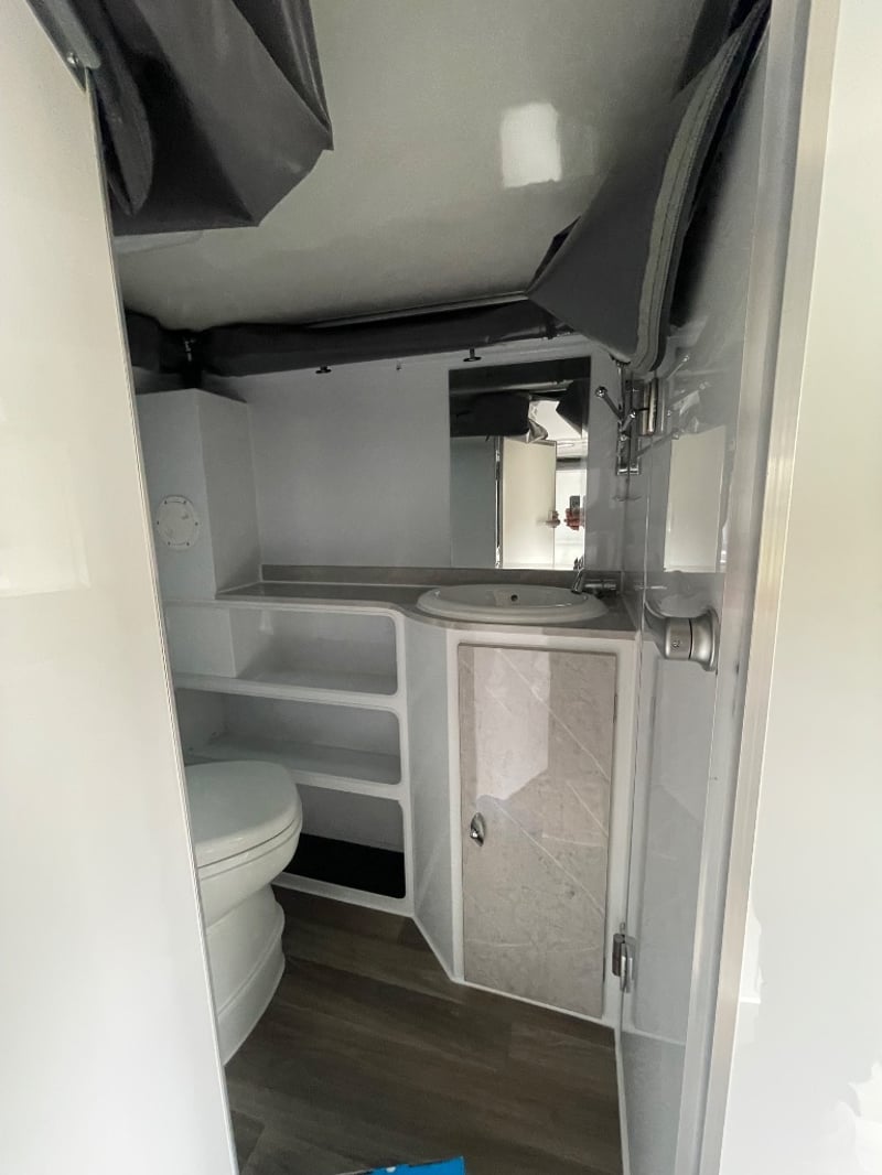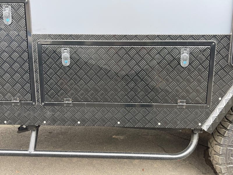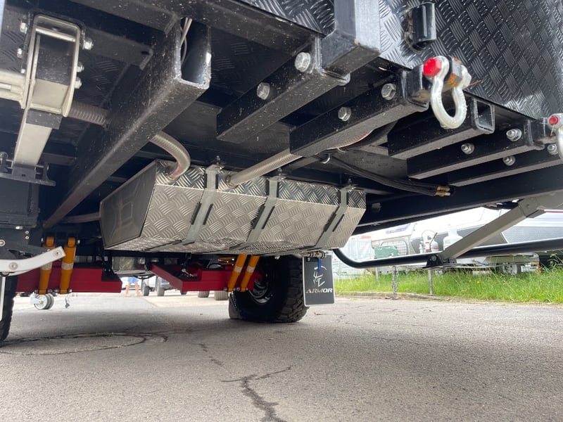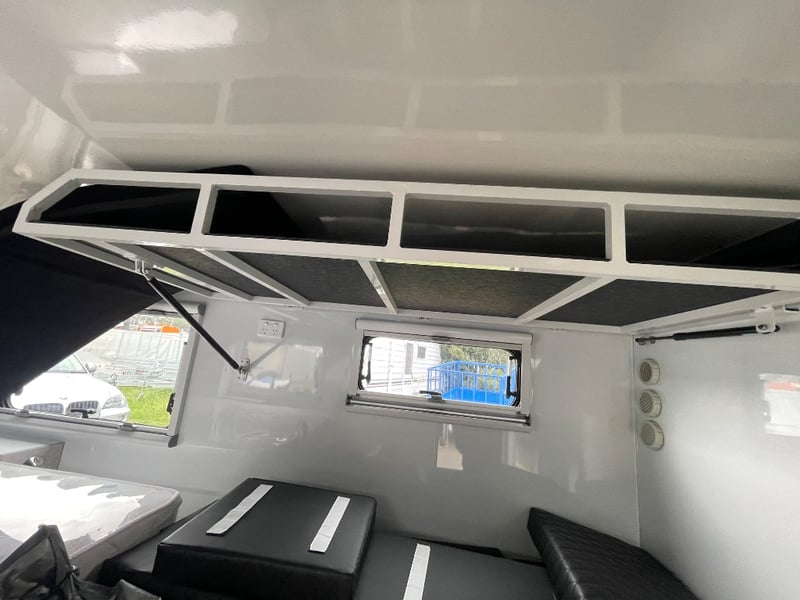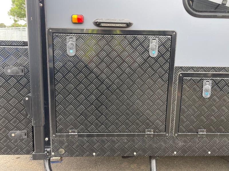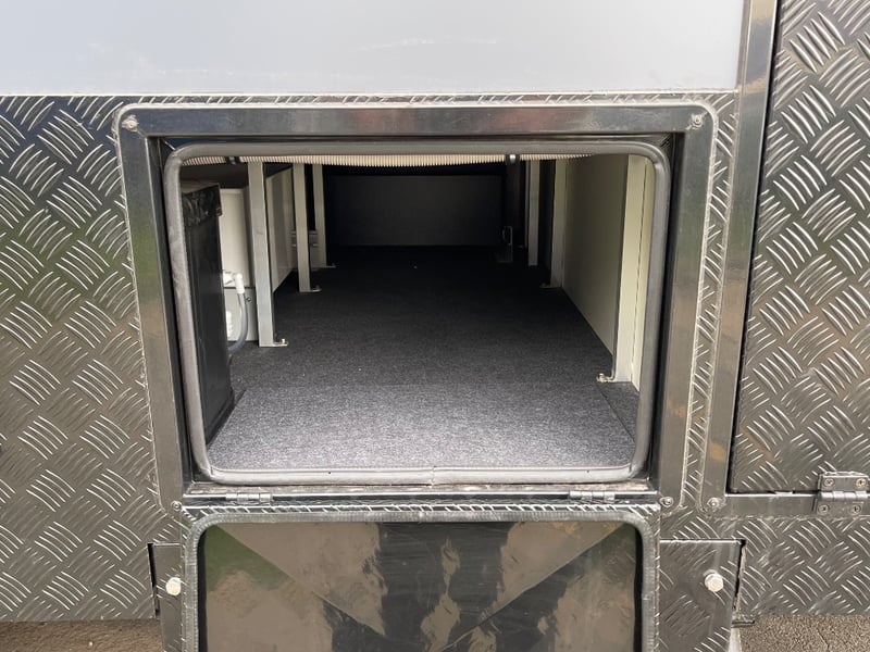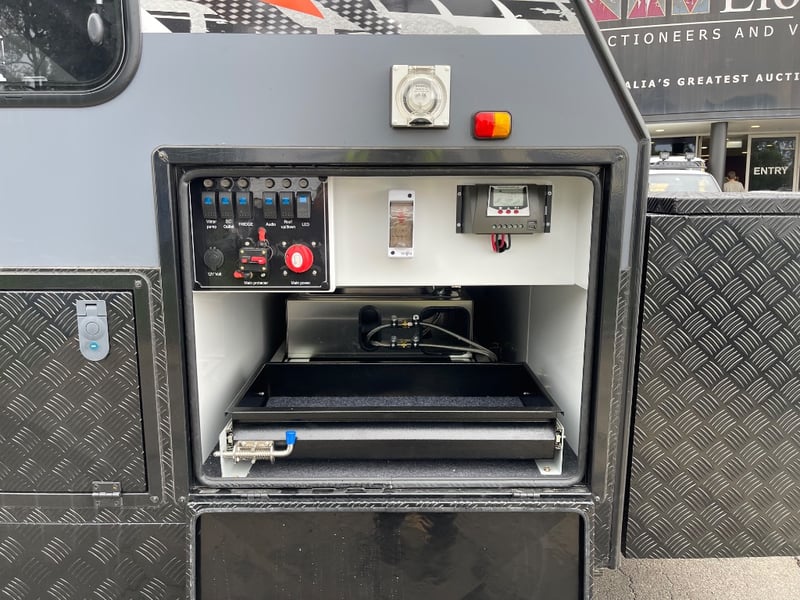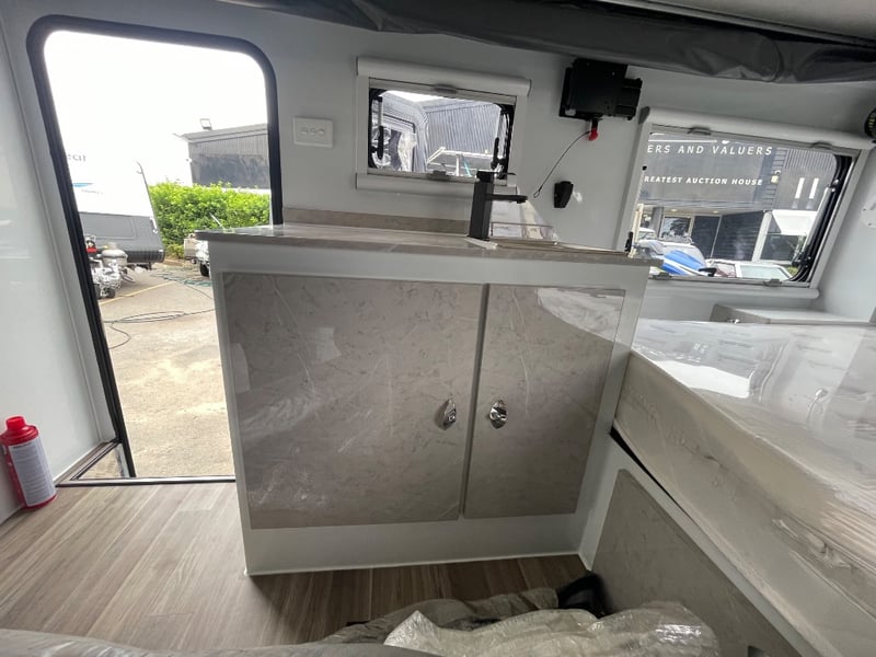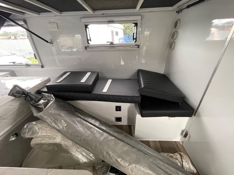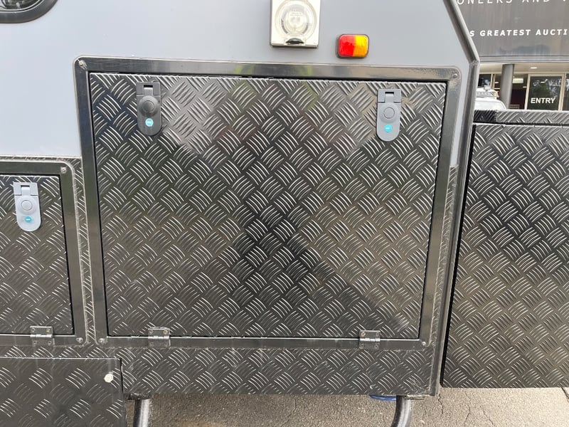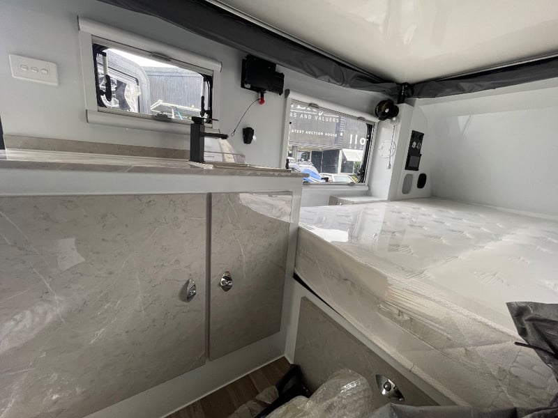 The van also includes a large awning and annex system constructed from heavy-duty 16oz waterproof canvas, creating an expanded outdoor living area ideal for camping or extended stays. With generous water storage, modern lighting and thoughtful inclusions throughout, this caravan presents as a well-equipped and adventure-ready touring solution.