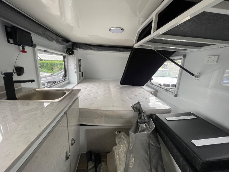 Comfort and convenience are well catered for, with features including air conditioning, Truma hot water system and a spacious bedding area, along with a practical electrical setup incorporating a roof-mounted solar panel, inverter and charger system. The pop-top design allows for a lower travel height while providing increased internal space when set up, making it both easy to tow and comfortable to live in.