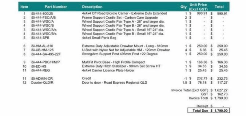 • ISI quality bike rack fitted