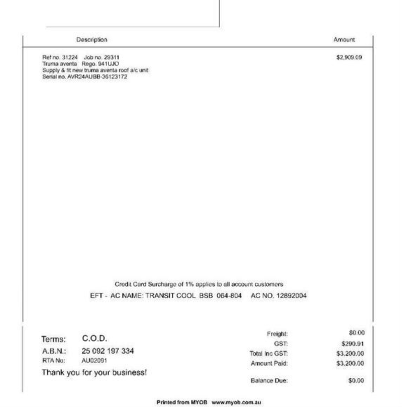 ** This vendor is not registered for GST - therefore GST is not applicable on this asset **