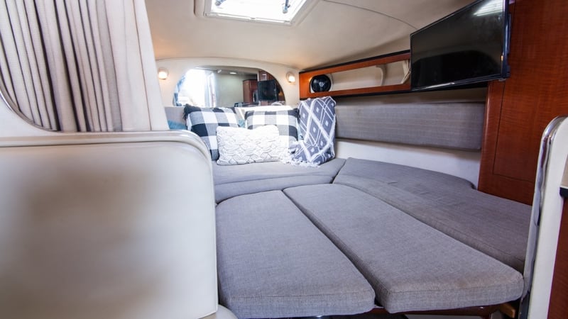 The layout comfortably accommodates up to six persons, making the vessel well suited to family cruising, entertaining, or extended stays aboard.