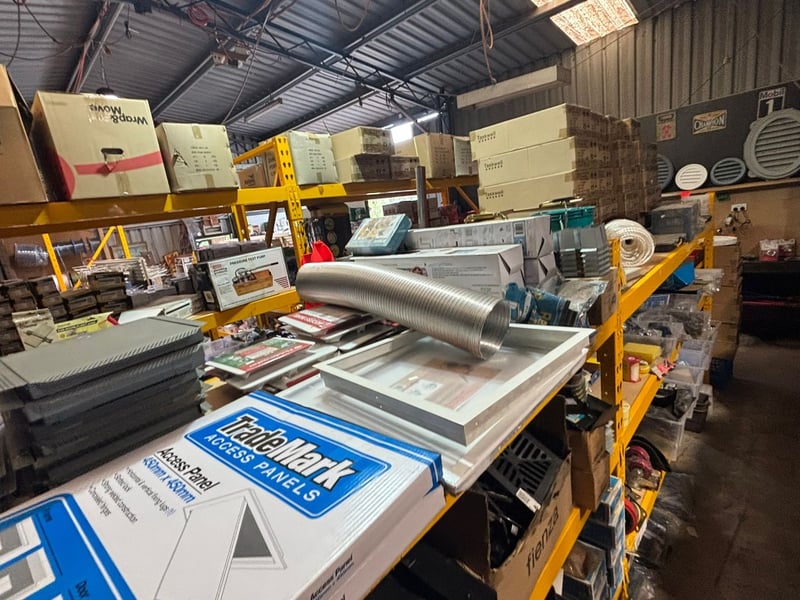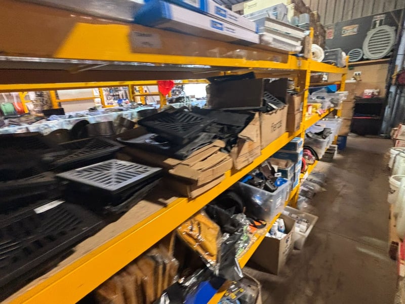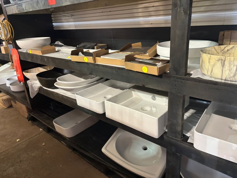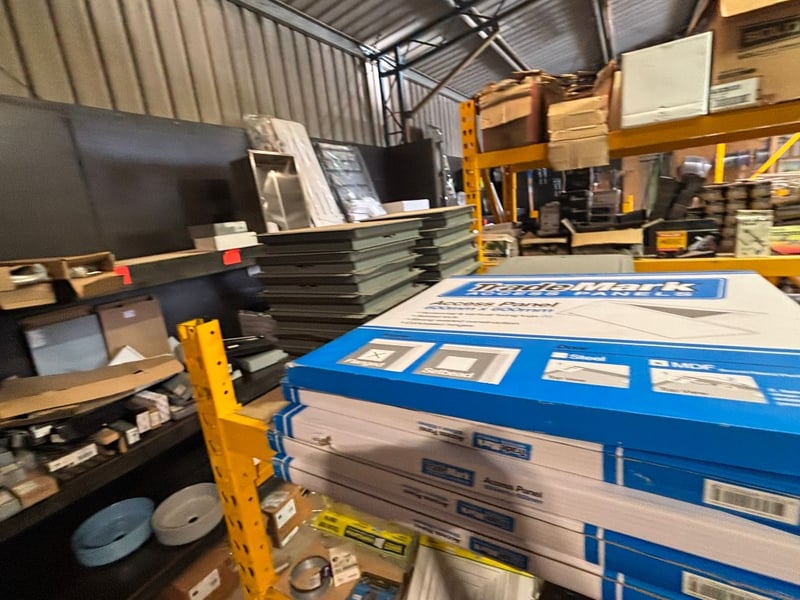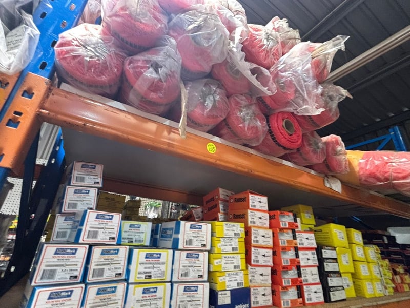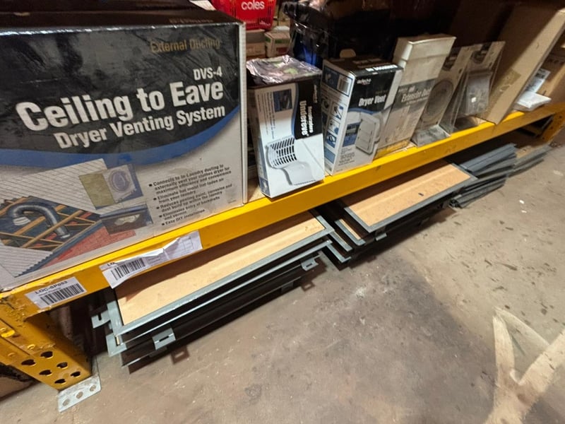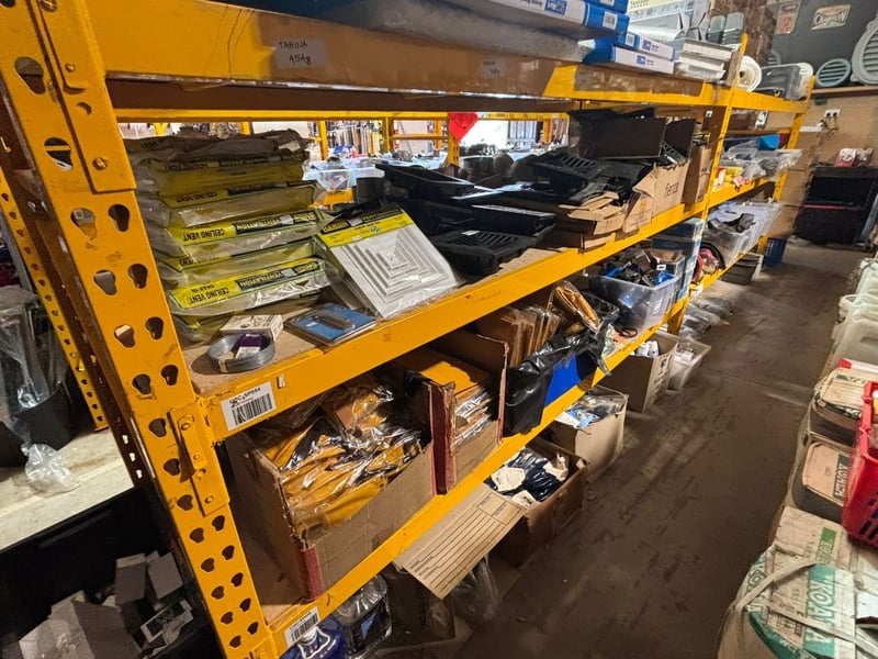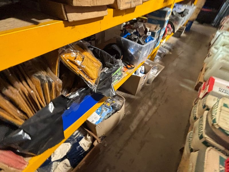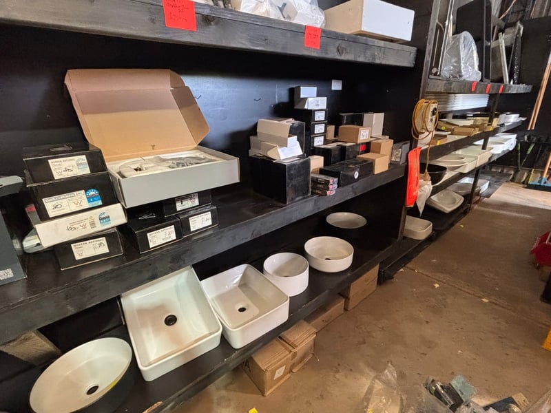 NOTE: PALLET RACKING AND SHELVING NOT INCLUDED IN SALE! BUILDING MATERIAL CONTENTS ONLY!