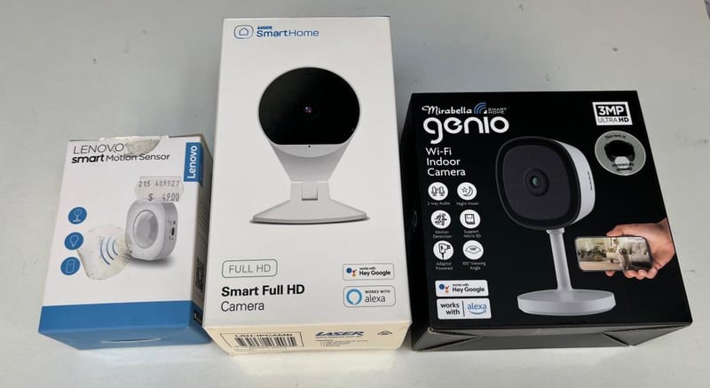 Smart Home items including 2 X Cameras, 1 X Smart Motion Sensor Switch SOLD AS 1 LOT
