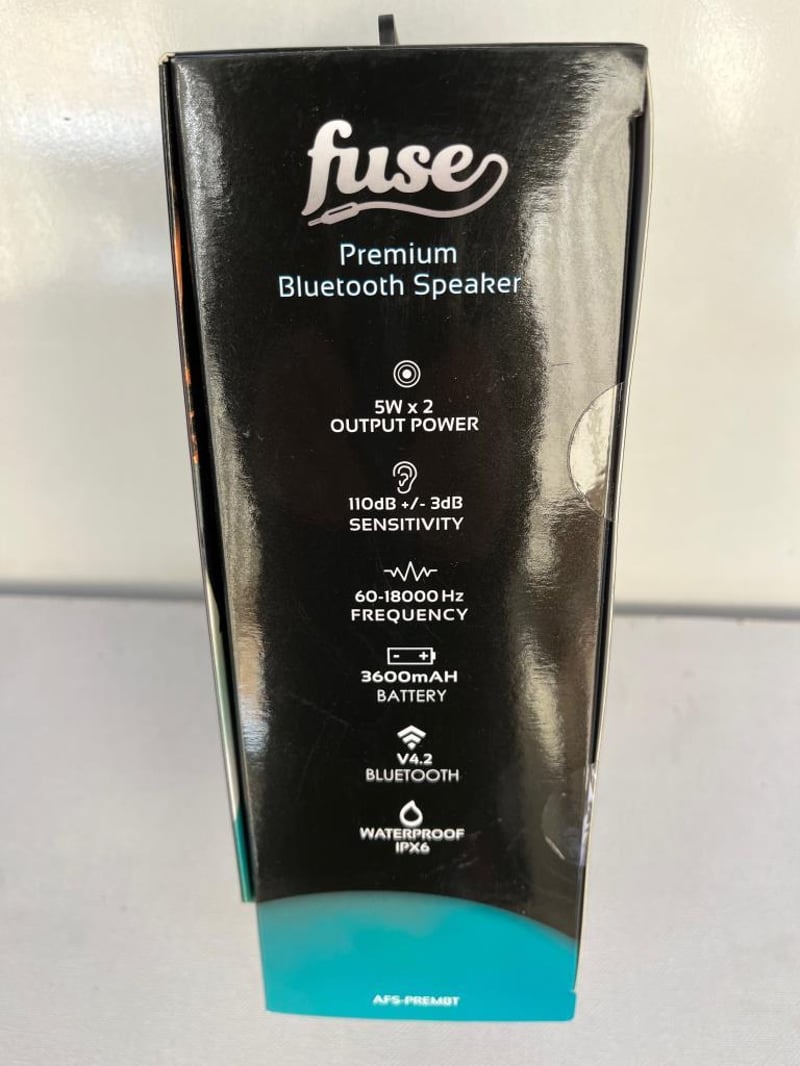 FUSE Premium Bluetooth Speaker Waterproof IPX6, Built in Hands Free Mic, Track-Volume Contol. Rechargeable 3600 mAh Li-ion Battery, 2 X 5W Speakers BRAND NEW IN BOX