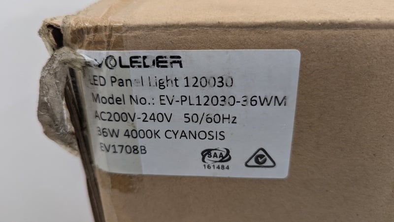 LED Panel Light, Evoleder, Model: EV-PL12030-36WM, 36W 4000K, Dimensions: 1cm(T)×120cm(W)×30cm(D), Quantity 5Sold As Lot