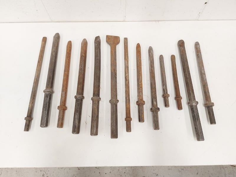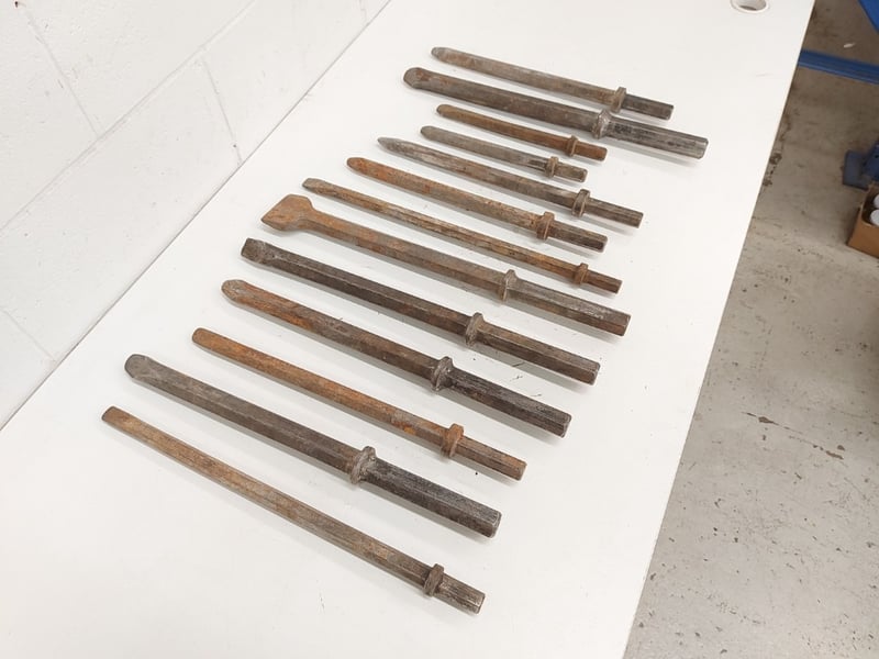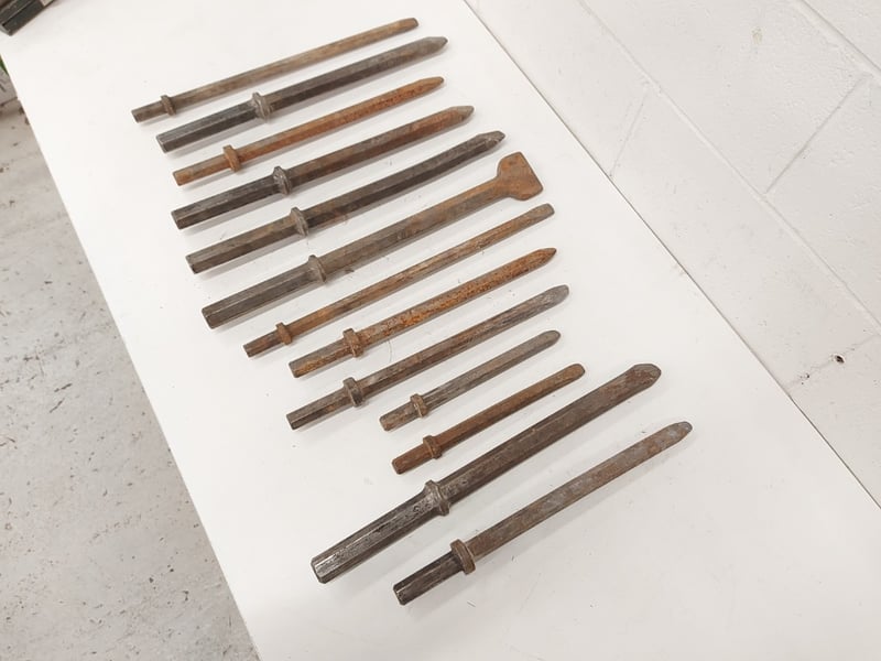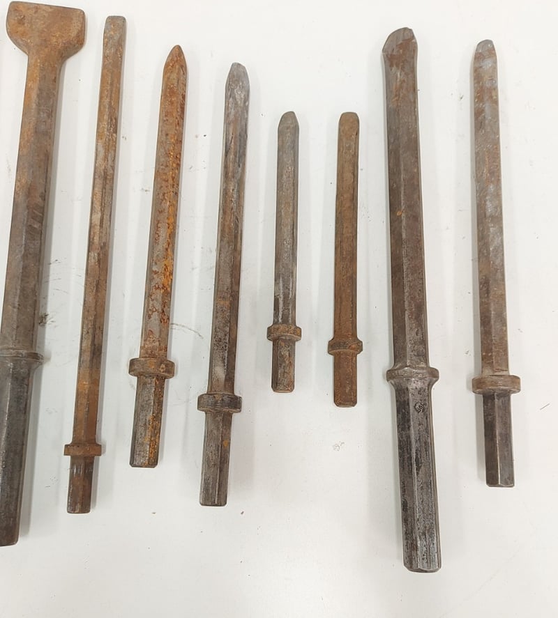 Assorted pneumatic chisel/breaker tool bits, various makes & sizes