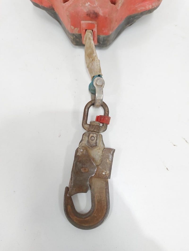 Robust casing with top mounting point and fitted hook on the lifeline.