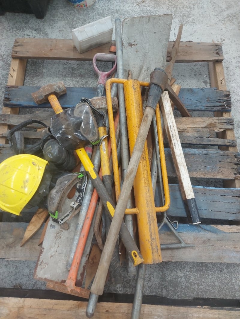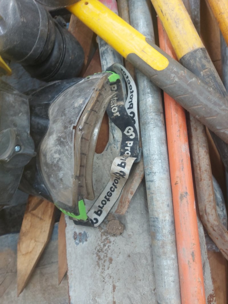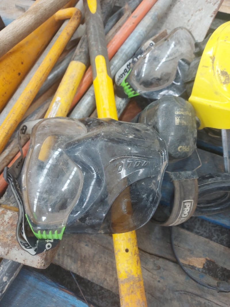 Assorted Lot containing Various tools and headgear