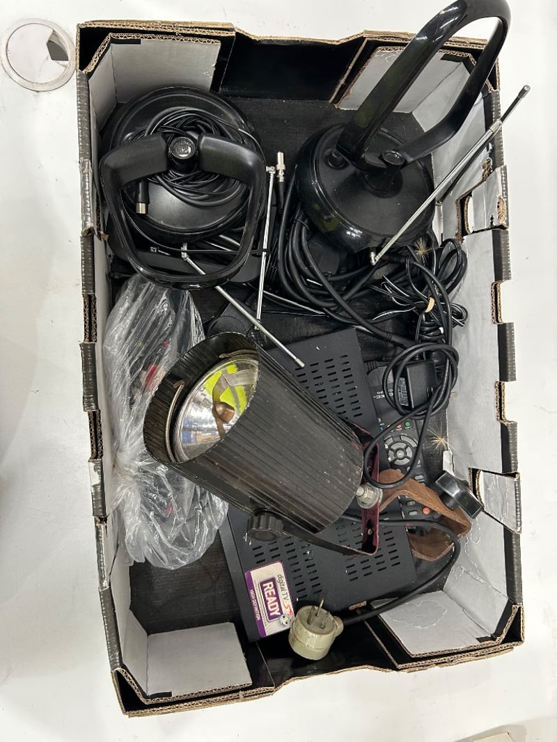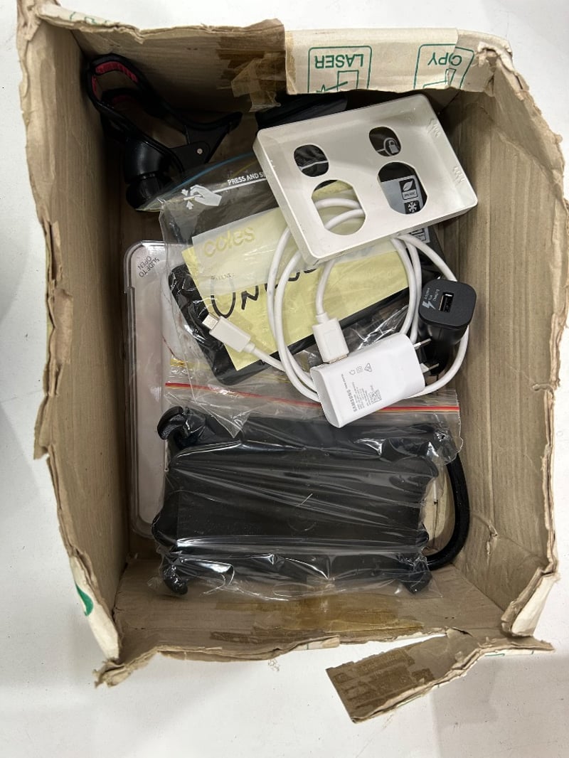 Assorted Electronics, including horn speakers, cables, phone cases ect
