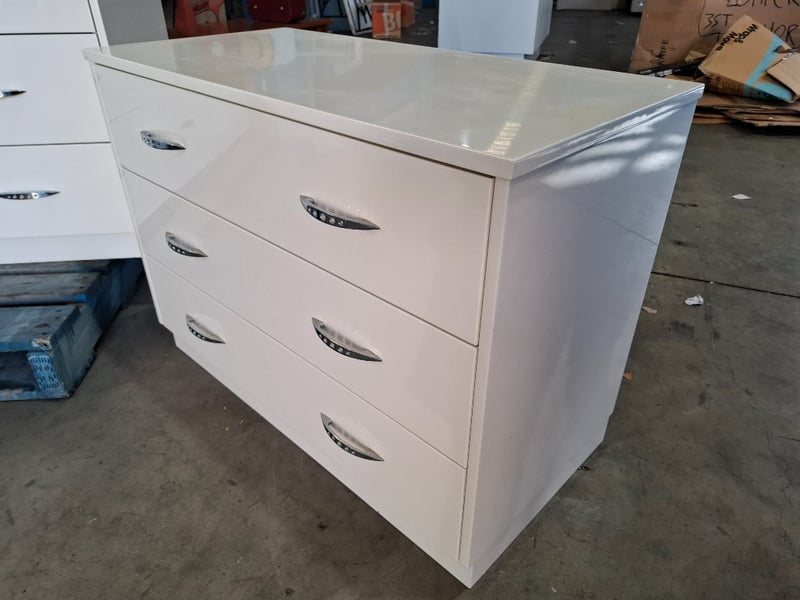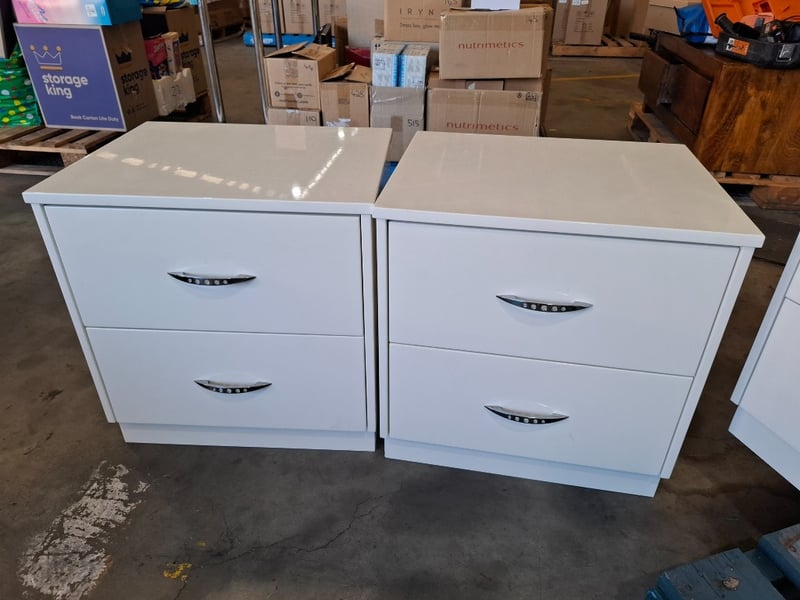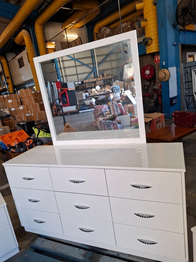 White timber vanity set includes 2 x Bedside tables, 1 x Vanity , 1 x set of drawers
