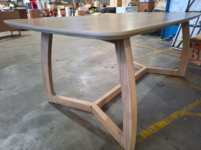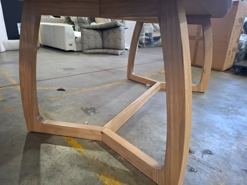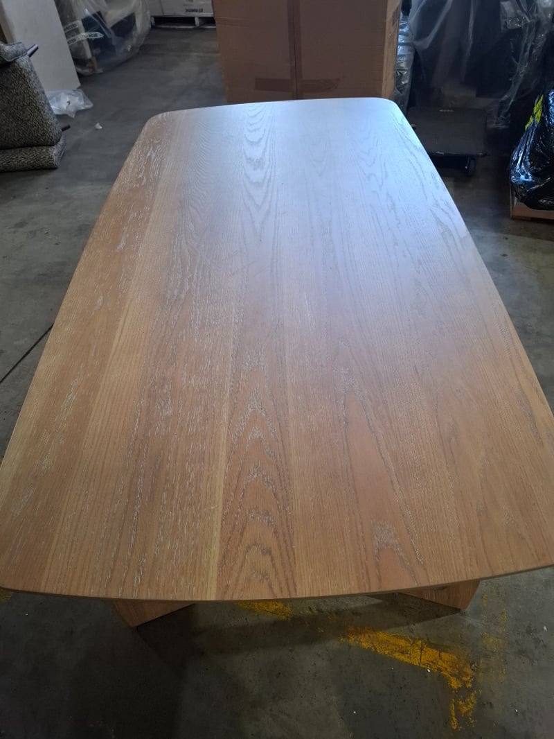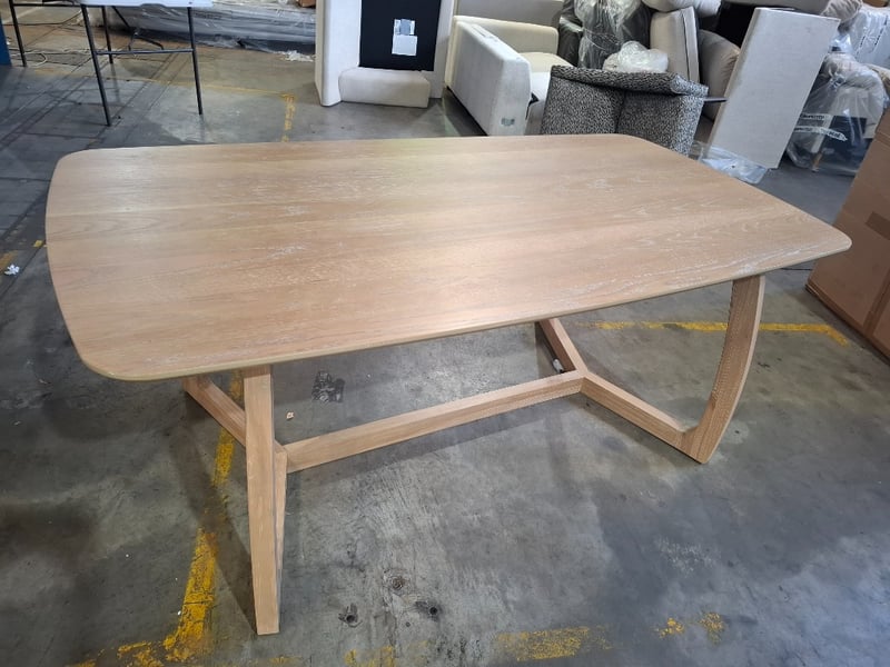 Dinning table, timber, light white wash finish, arch style timber legs