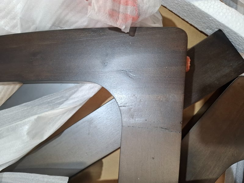 Dinning table, timber, granite finish, arch style timber legs Dimension: 190cmW x 10pcmD x 77cmH Note: item disassembled, parts may be missing