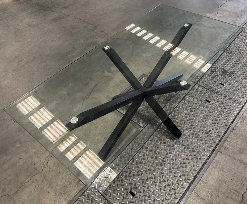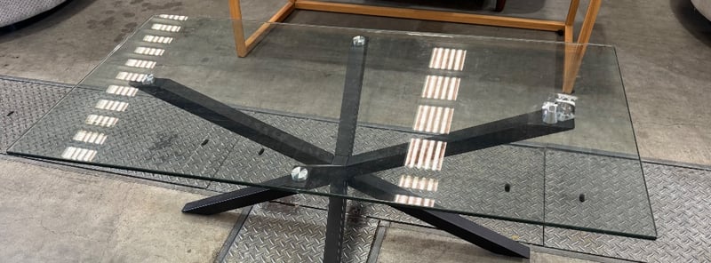 Glass top coffee, black metal frame