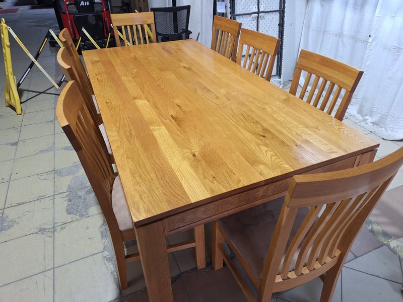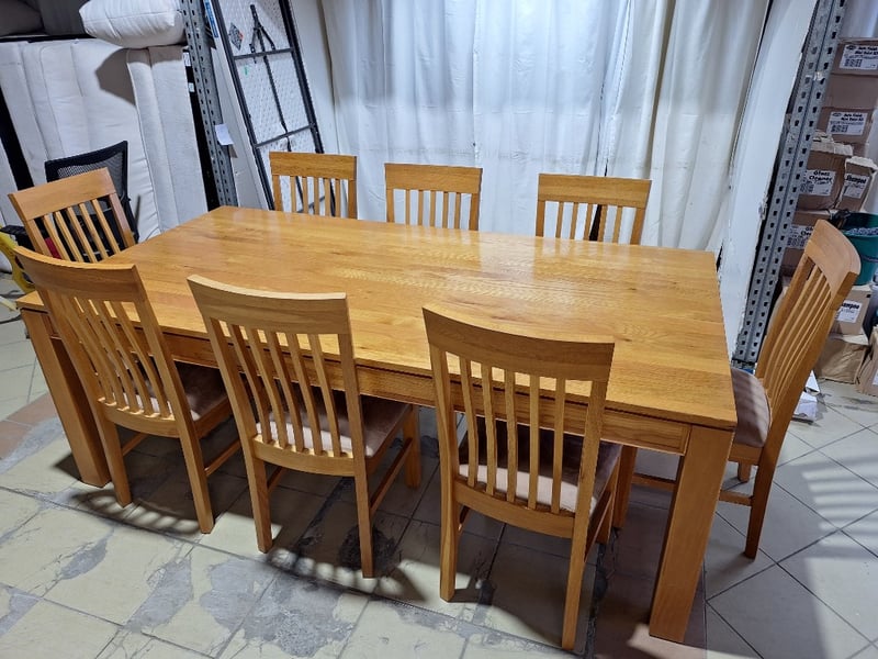 8-Seater Dining Table, Timber Style, Natural Finish Dimensions Table H:75cm W:210cm D:105cm SOLD AS LOT