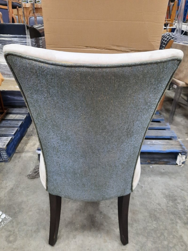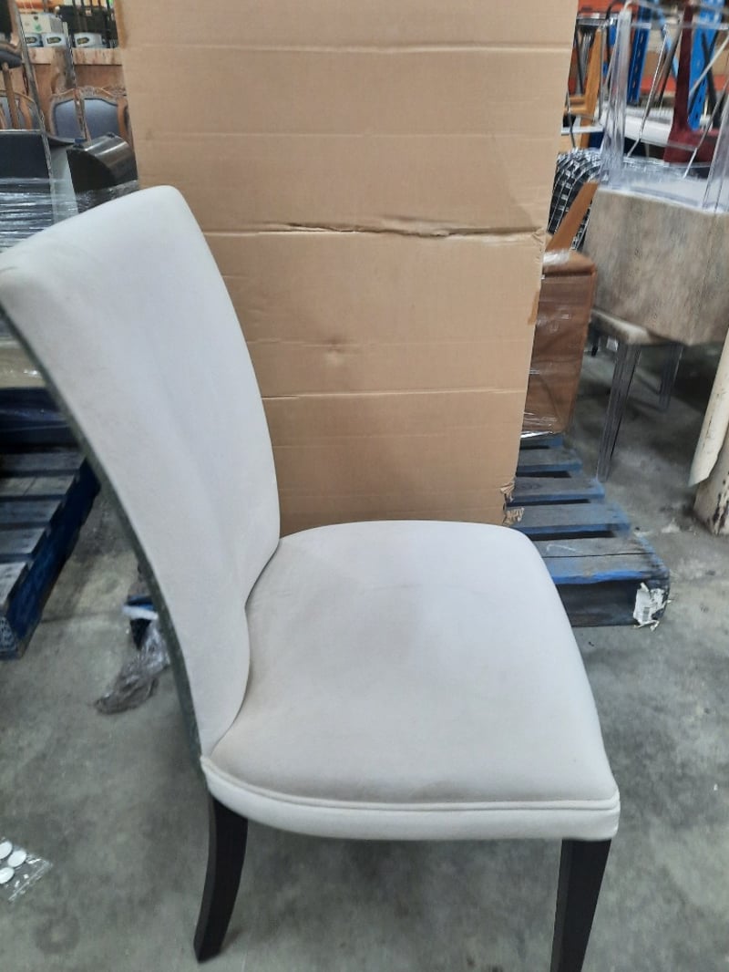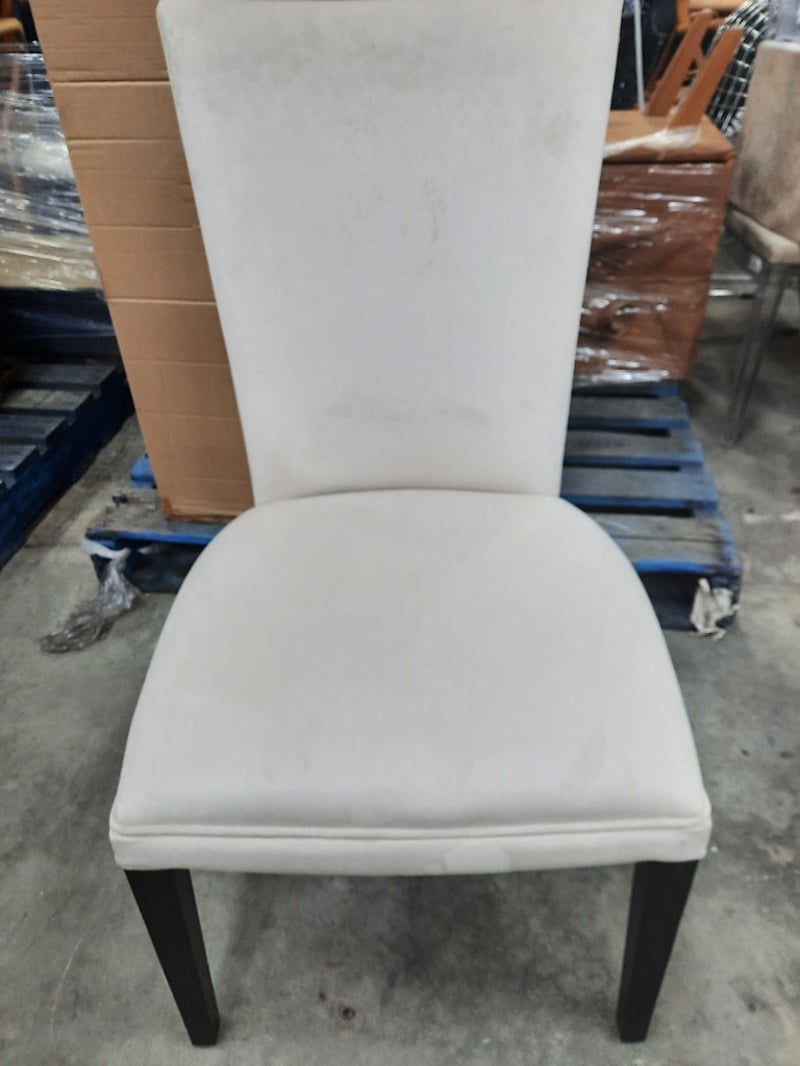 Dining ChairCream coloured velvet material on wooden legsDimensions: H95CMxW55CMxL50CM
