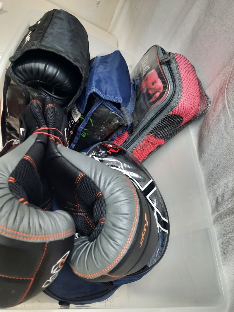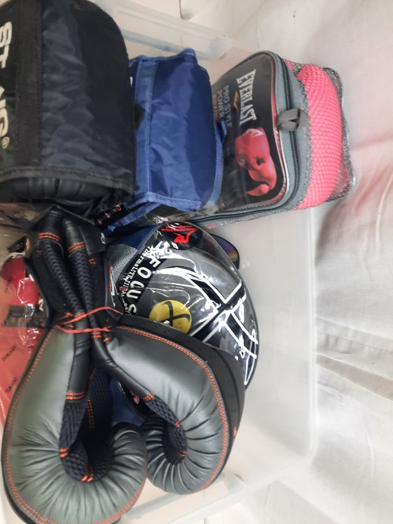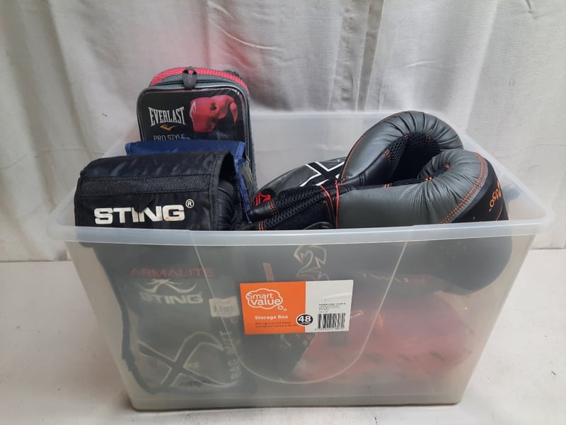 Storage Tub Of Boxing Gloves, Various Sizes And Colours