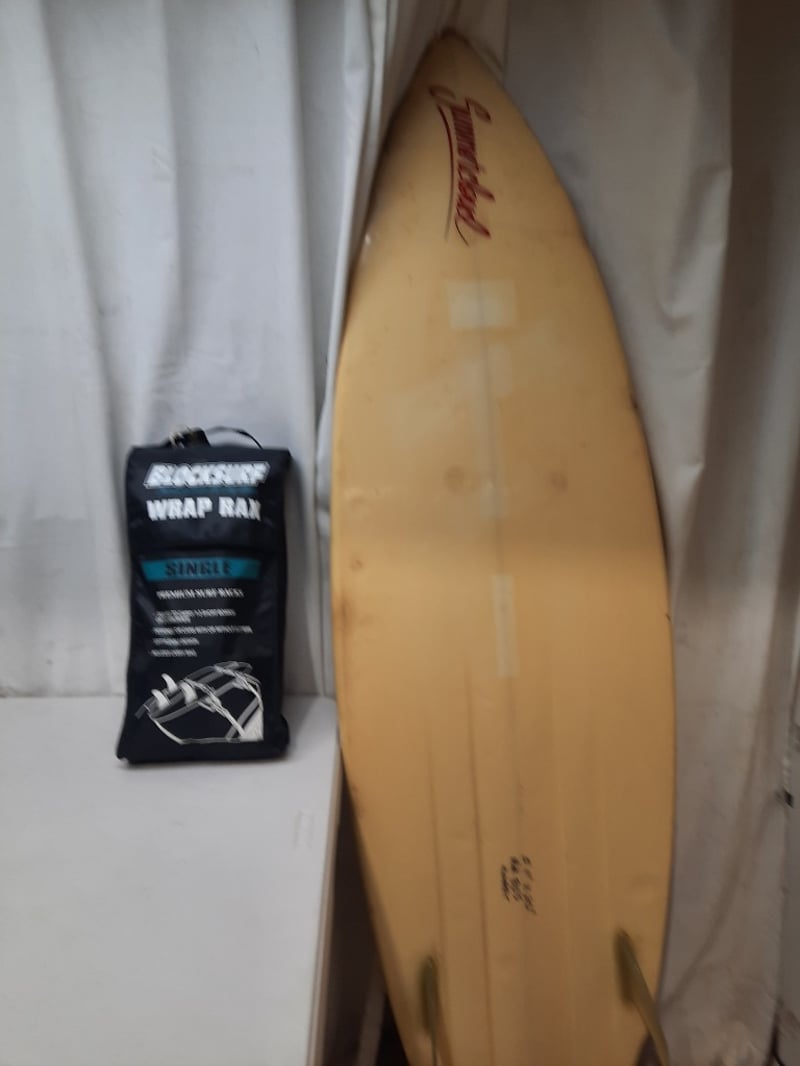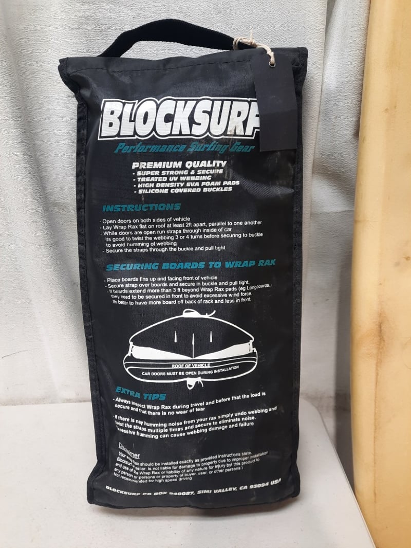 BlockSurf Wrap rax, 5' 11 x 20 Mids 80s thruster Surfboard, Includes StandSOLD AS LOT