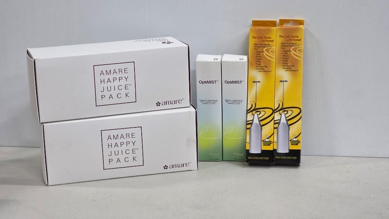 Beauty, Amare, Happy Juice Pack x2, OptiMIST x2, mini hand mixer x2Sold as lot