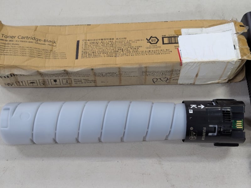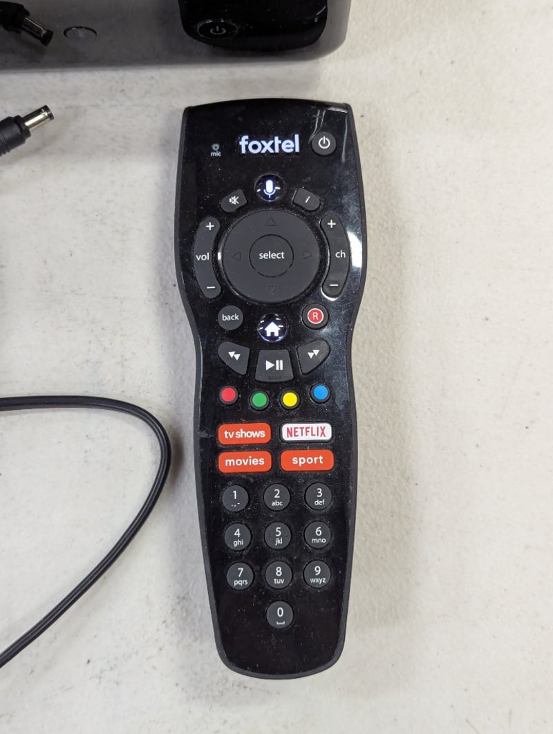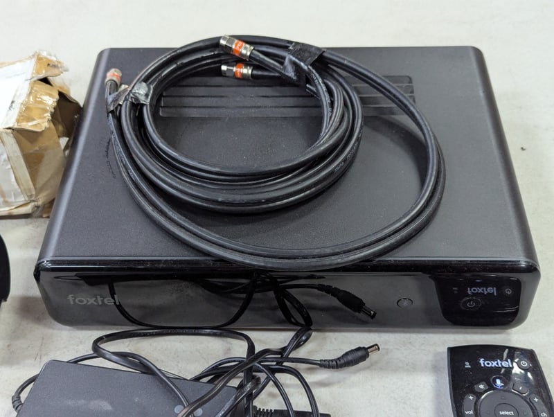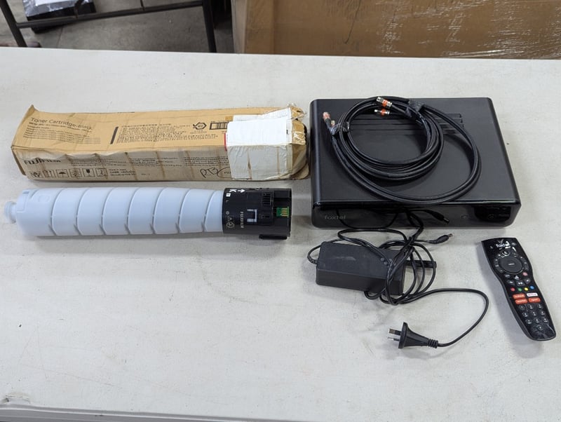 Foxtel set top box with remote and fujifilm black toner cartridgeSold as lot