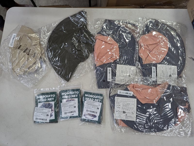 Collection of proctective headgear and mosquito head netsSold as lot