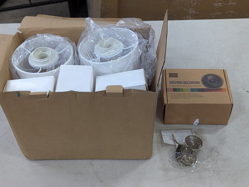 Two wall mounted lights, decorative homeware items and hd driving recorderSold as lot