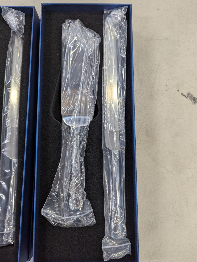 Pair of cake serving sets and 600metre x 33cm cling wrapSold as lot