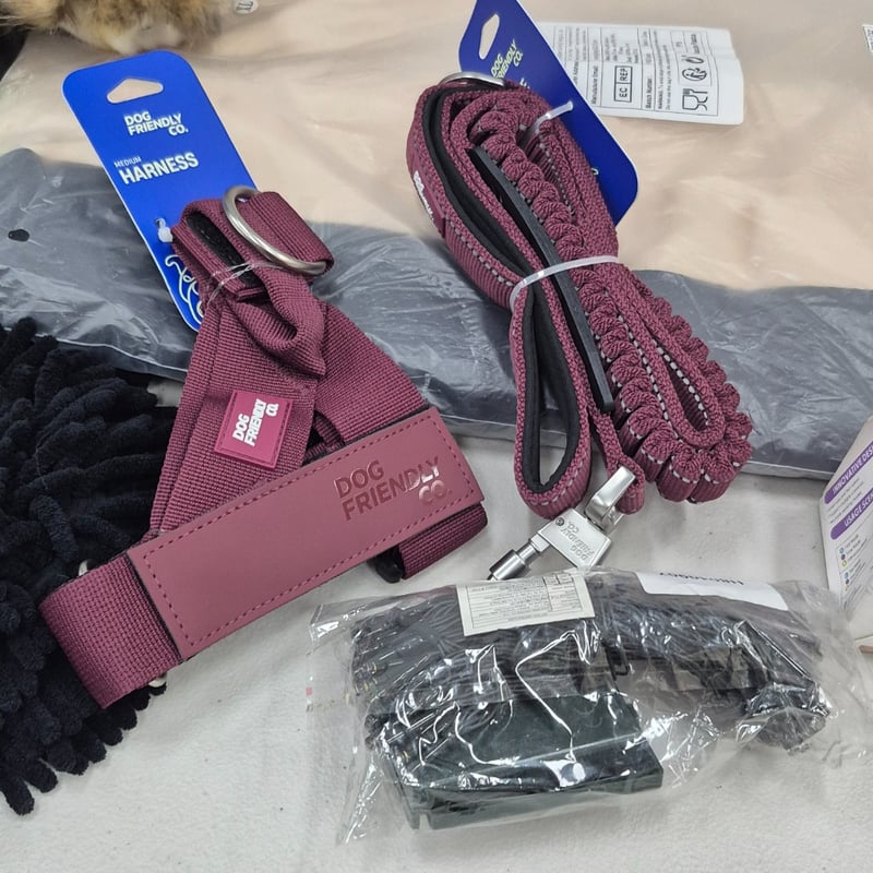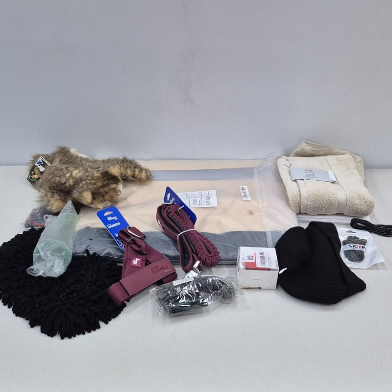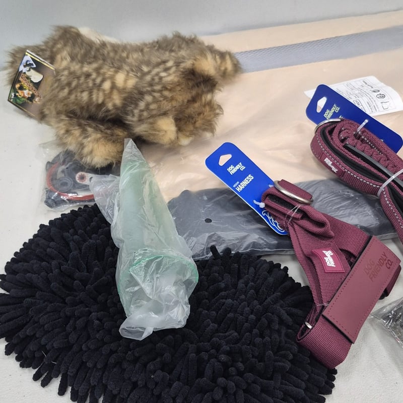 Assorted lot including cat carrier XL, dog lead/harness, beanie and moreSold as lot