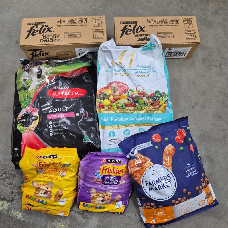 Assorted lot of pet food Note dog purina seal broken