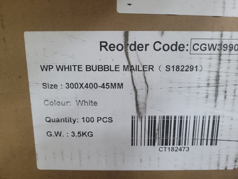 WP White Bubble Mailer bags, 300 x 400-45mm, box qty approx 100 (sold as lot)