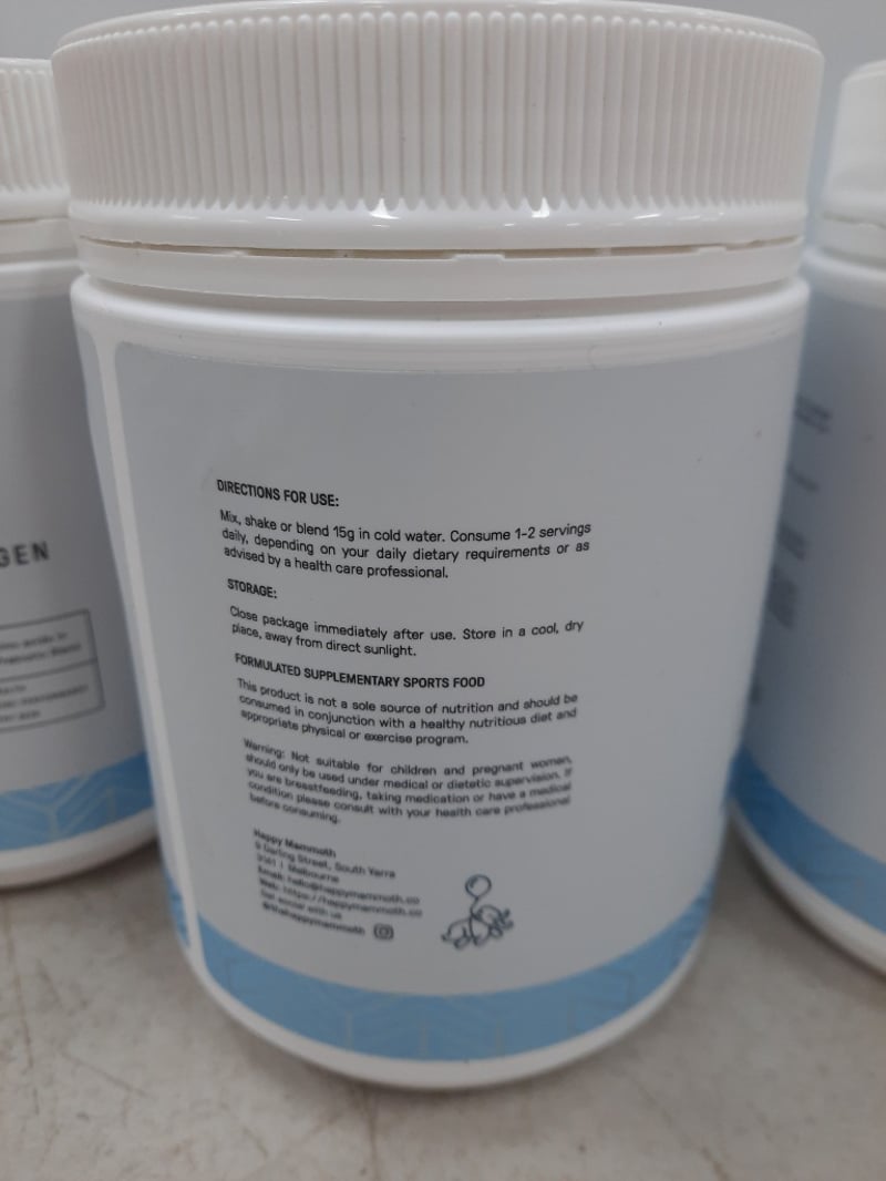 Prebiotic Collagen Protein Powder, Happy MammothVanilla Bean FlavourX4 SOLD AS LOT