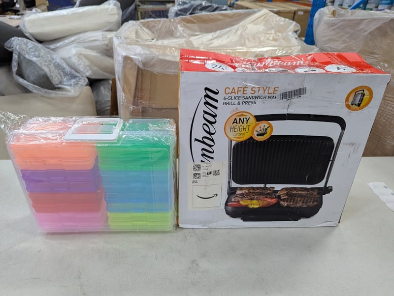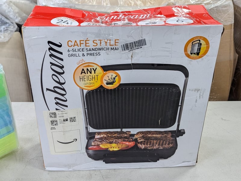 Sunbeam cafe style 6 slice sandwich maker grill & press and collection of plastic sandwich boxes