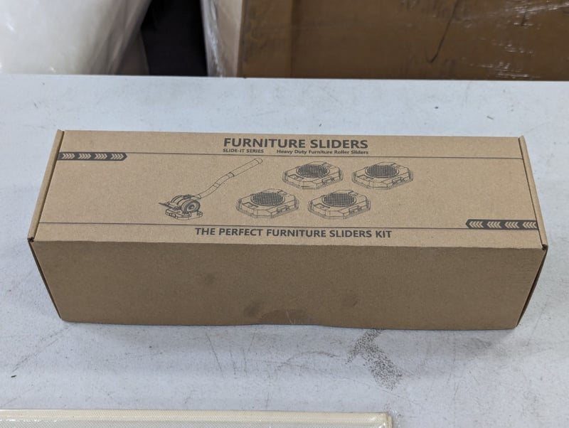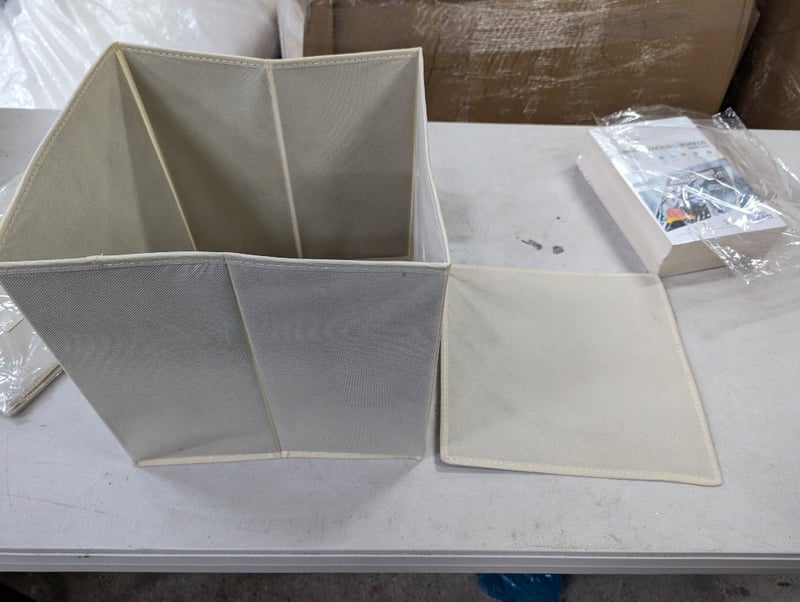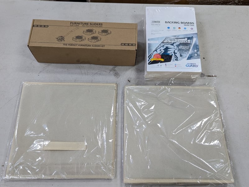 Two canvas fold out storage cubes, furniture sliders kit and 100 unit pack of backing boardsSold as lot