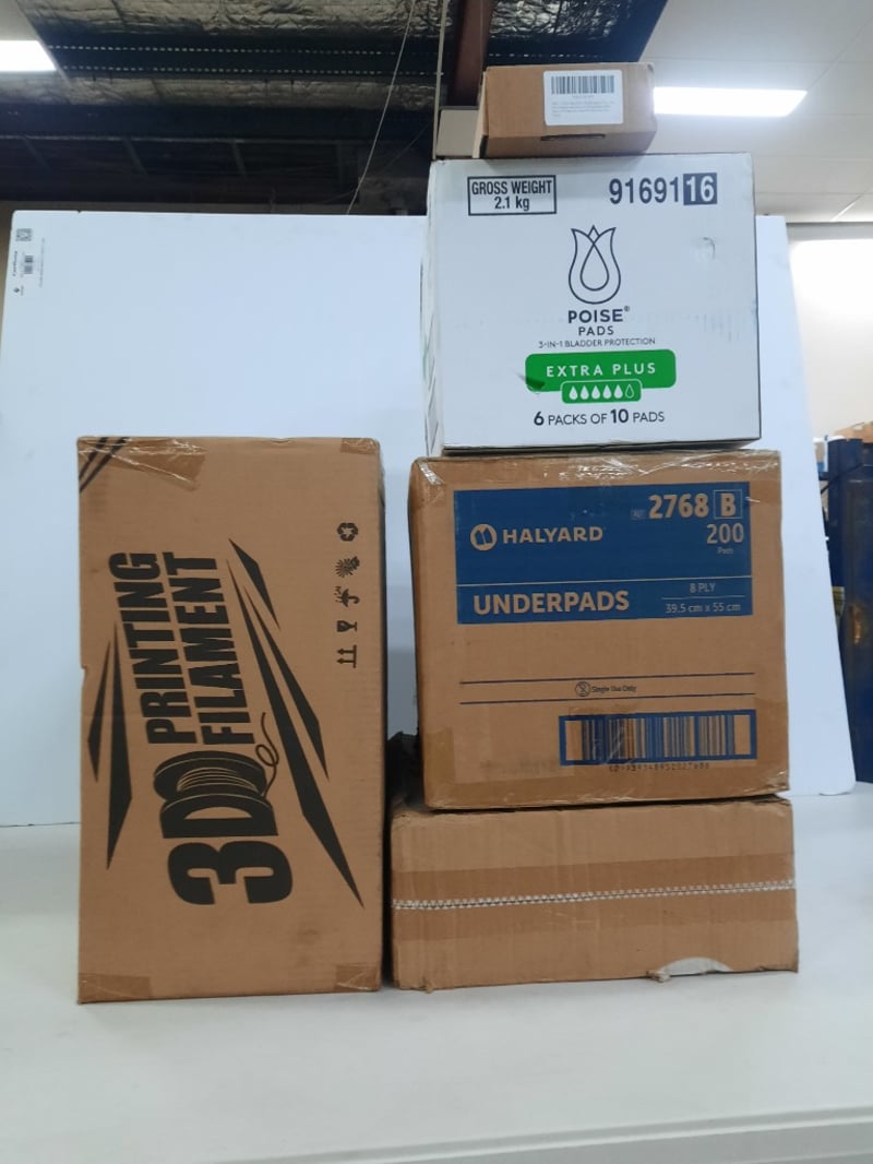 Assorted Lot Including, Underpads, Poise Pads, 3d Filament and moreSOLD AS LOT