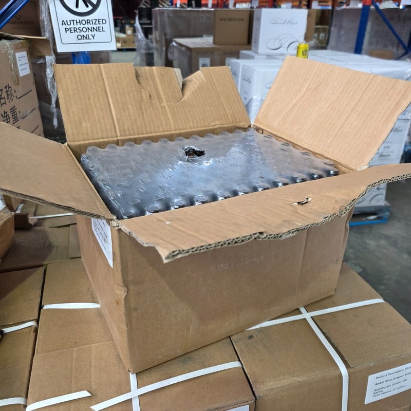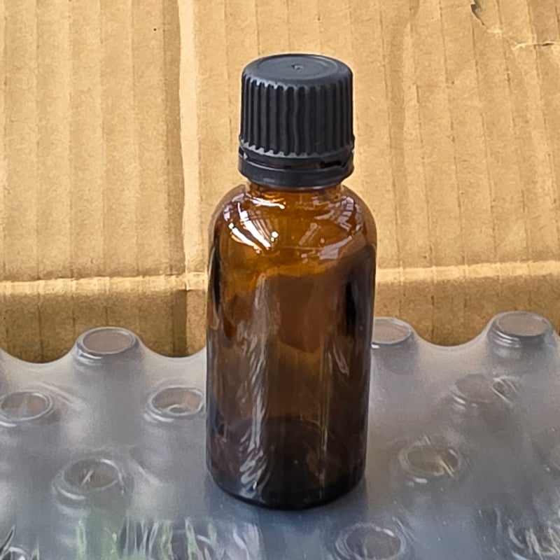 Glass droppers, Wholesale lot of 30ml amber glass dropper bottles with black plastic caps.