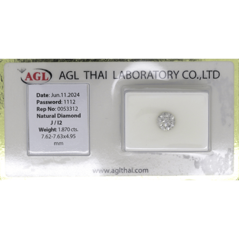 Round Brilliant Cut, J Colour, I2 Clarity, Loose, Unset. Stone Comes Sealed With Agl Report: 0053312.