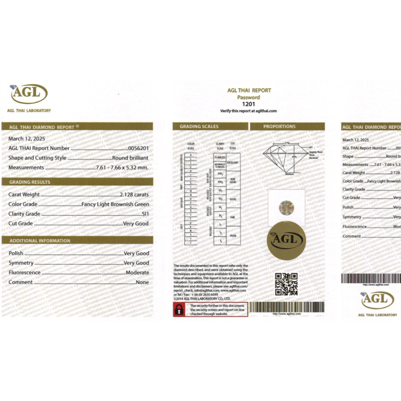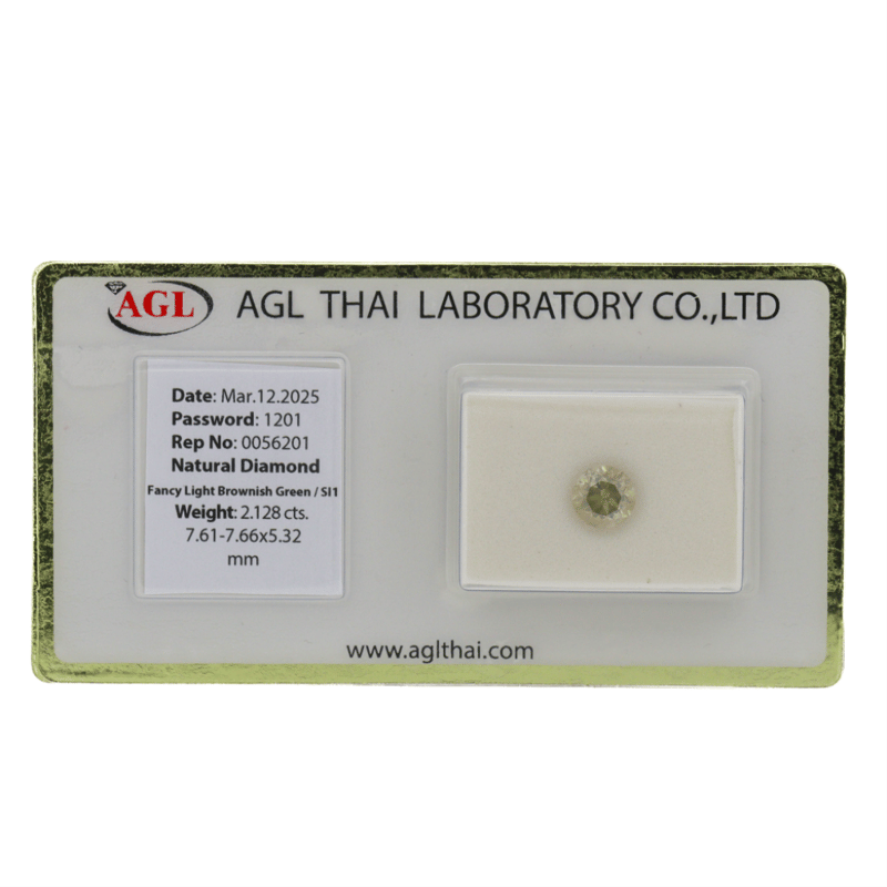 Round Brilliant Cut, Fancy Light Brownish-Green Colour, Si1 Clarity, Loose, Unset. Stone Comes Sealed With Agl Report: 0056201.