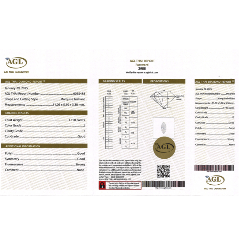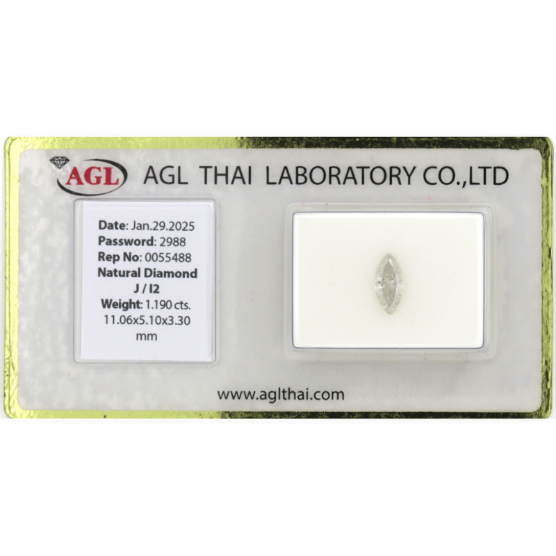 Marquise Brilliant Cut, J Colour, I2 Clarity, Loose, Unset. Stone Comes Sealed With Agl Report: 0055488.