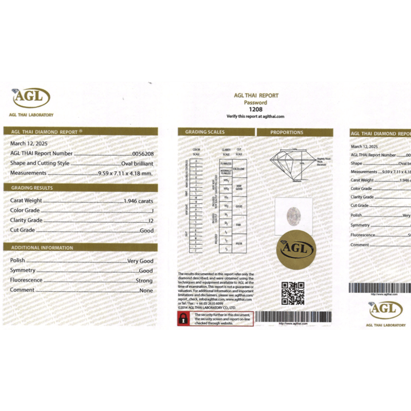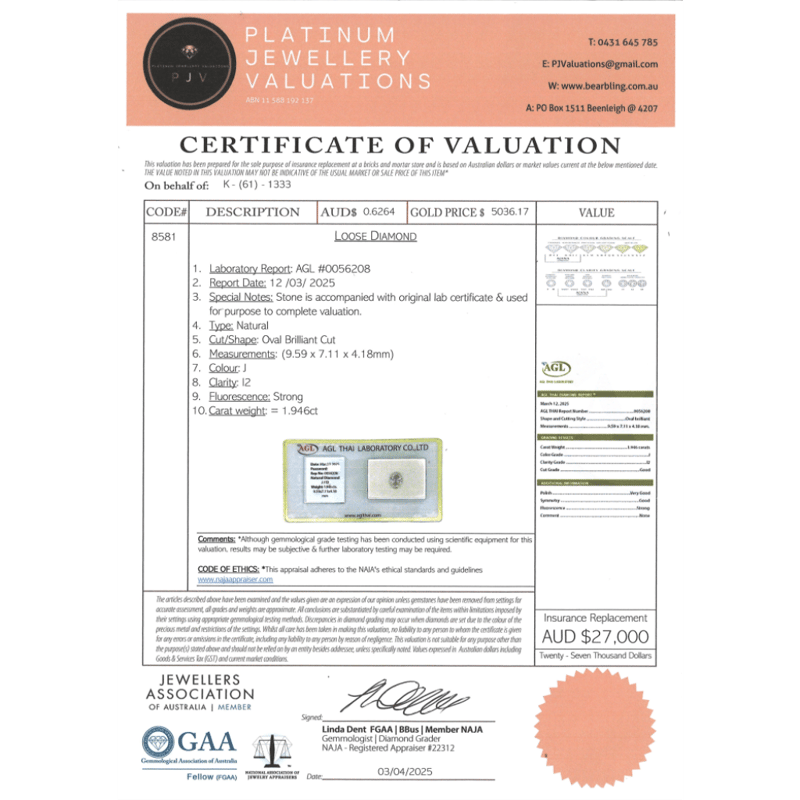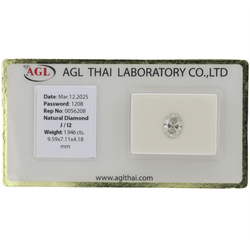 Oval Brilliant Cut, J Colour, I2 Clarity, Loose, Unset. Stone Comes Sealed With Agl Report: 0056208.
