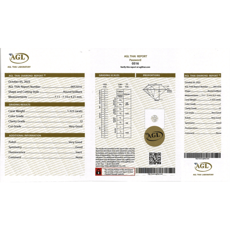 Round Brilliant Cut, J Colour, I2 Clarity, Loose, Unset. Stone Comes Sealed With Agl Report: 0051016.