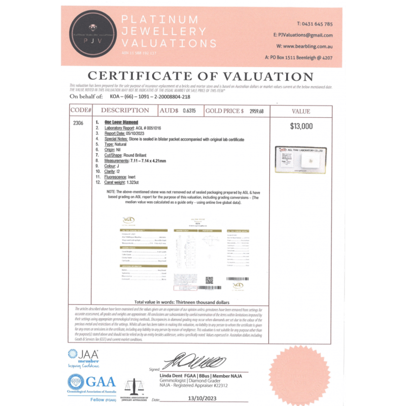 1.323CT CERTIFIED, NATURAL DIAMOND