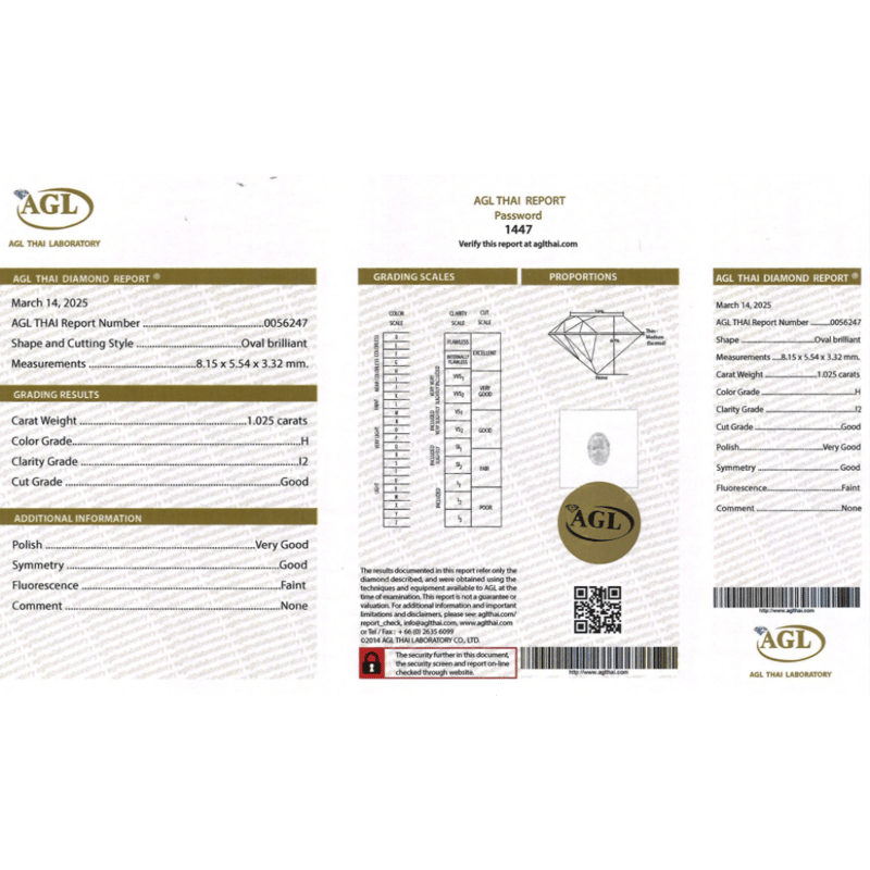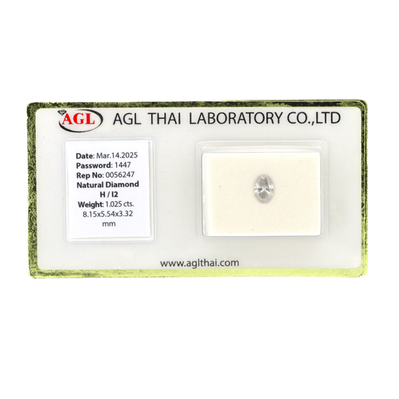 Oval Brilliant Cut, H Colour, I2 Clarity, Loose, Unset. Stone Comes Sealed With Agl Report: 0056247.