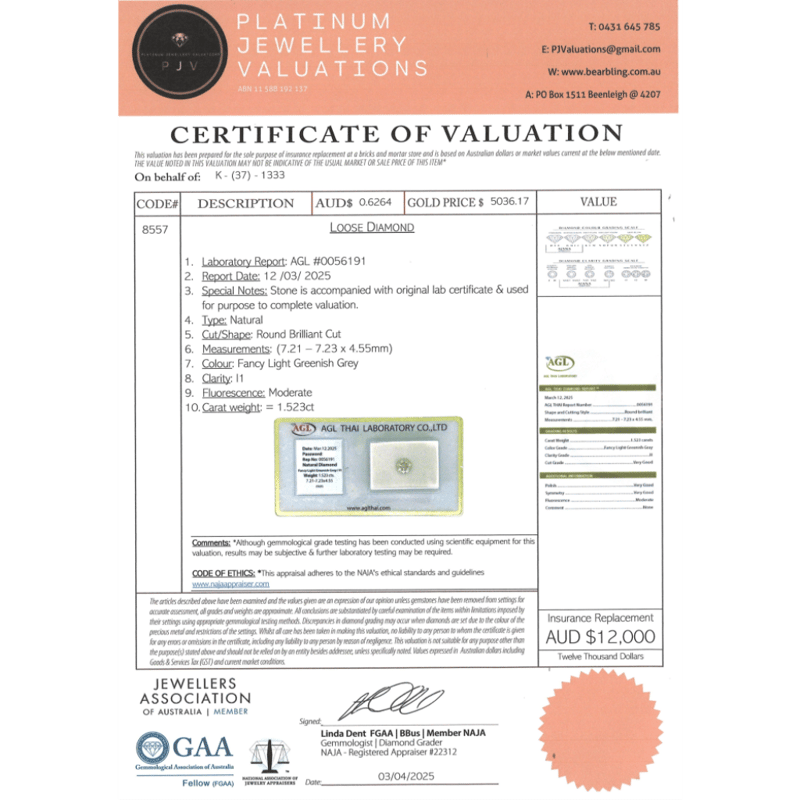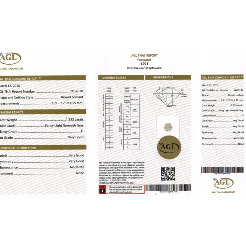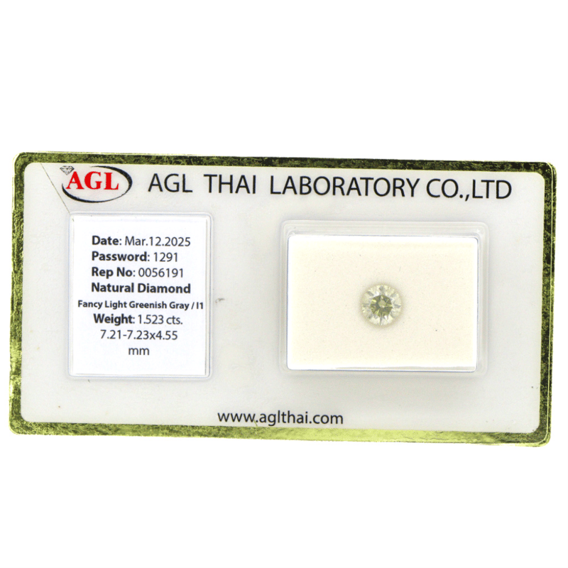 Round Brilliant Cut, Fancy Light Greenish-Grey Colour, I1 Clarity, Loose, Unset. Stone Comes Sealed With Agl Report: 0056191.